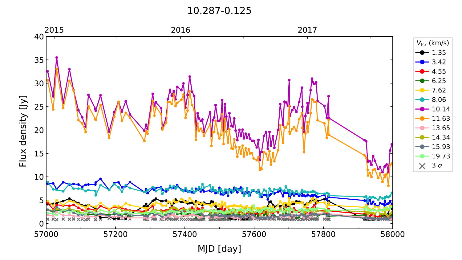 (L,B) = (010.287, -00.125) (RA, DEC [J2000]) = (18 08 49.36, -20 05 59.000)