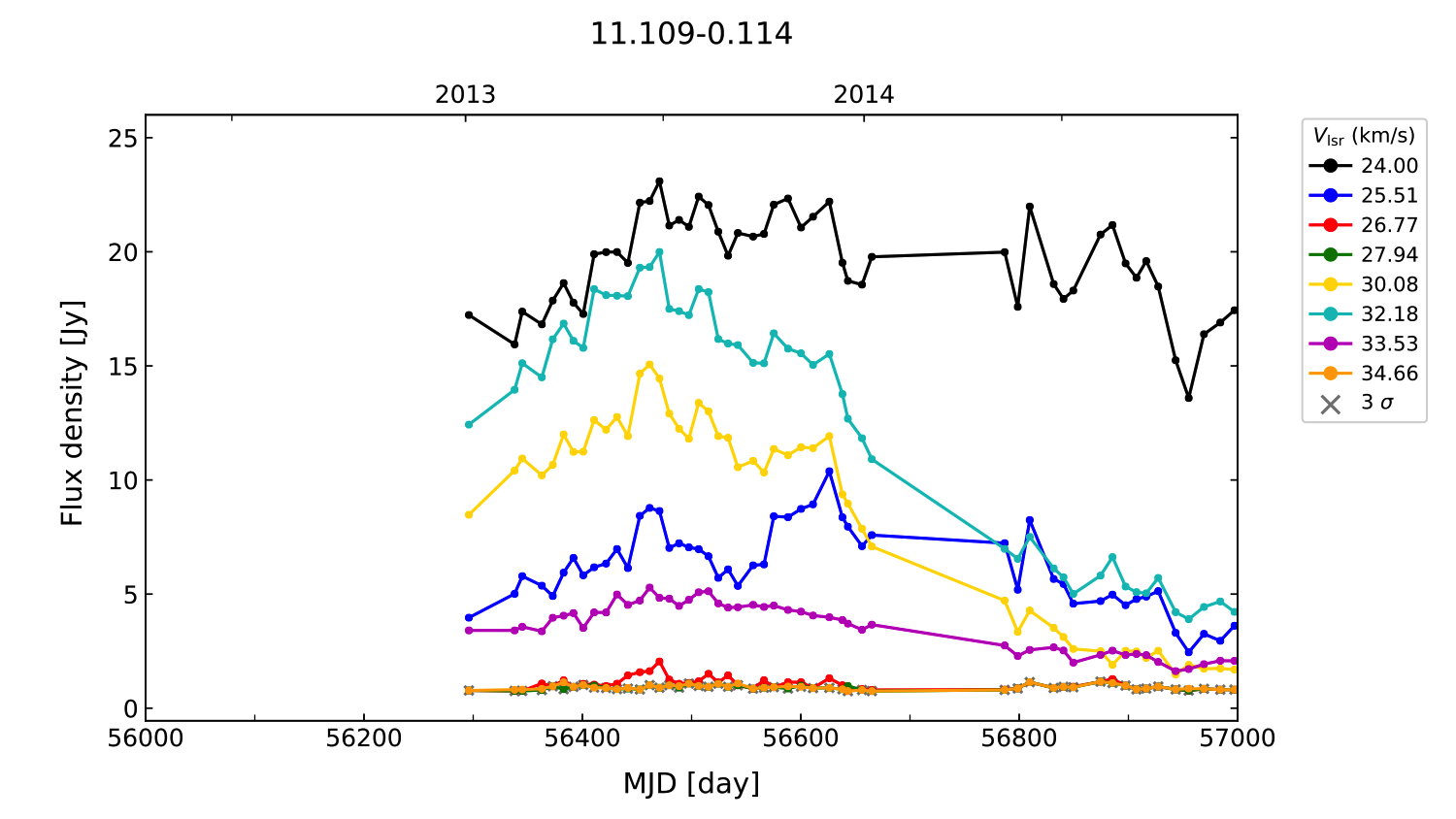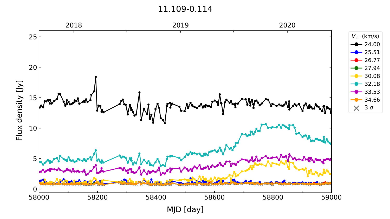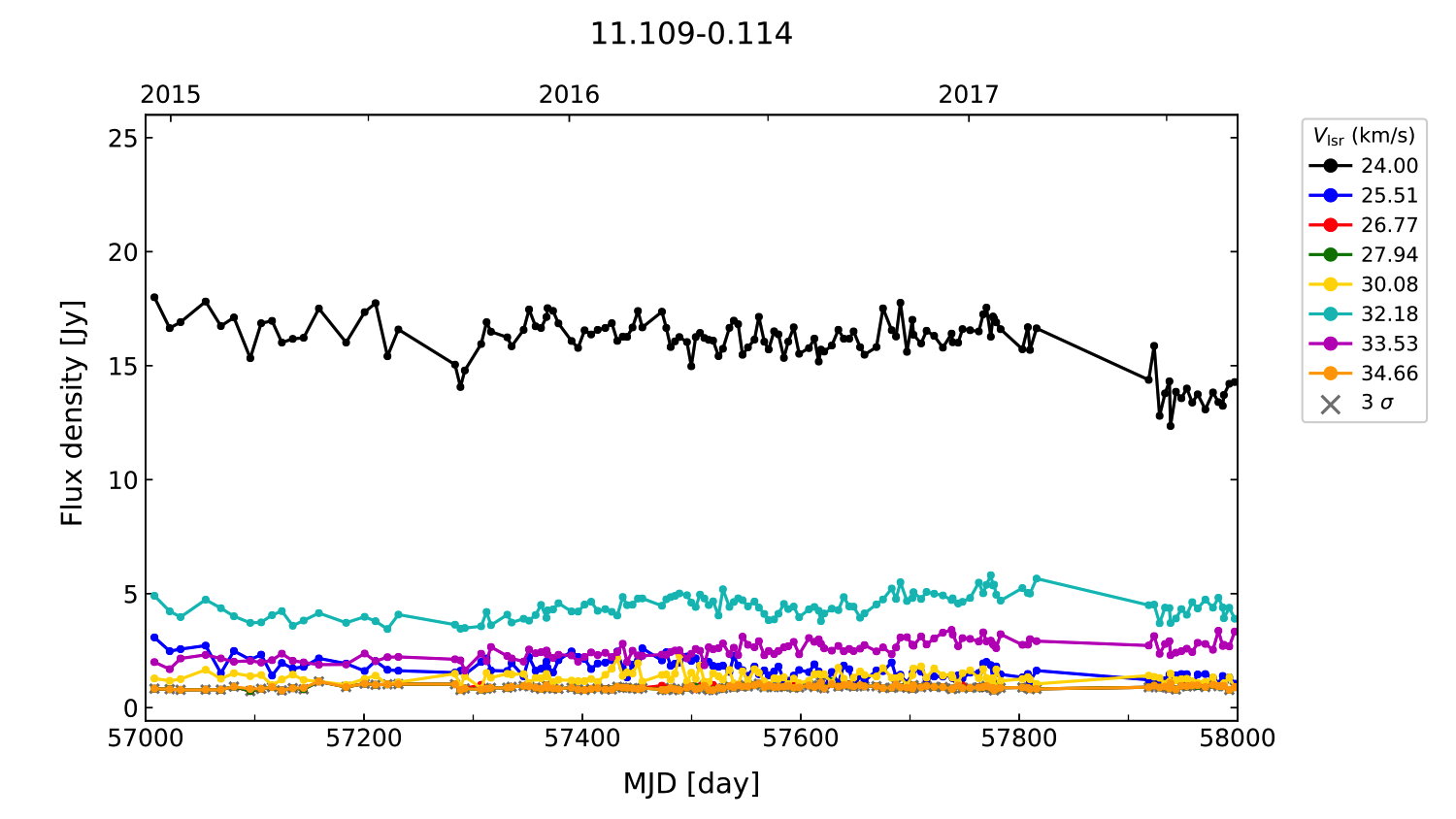 (L,B) = (011.109, -00.114) (RA, DEC [J2000]) = (18 10 28.25, -19 22 29.100)