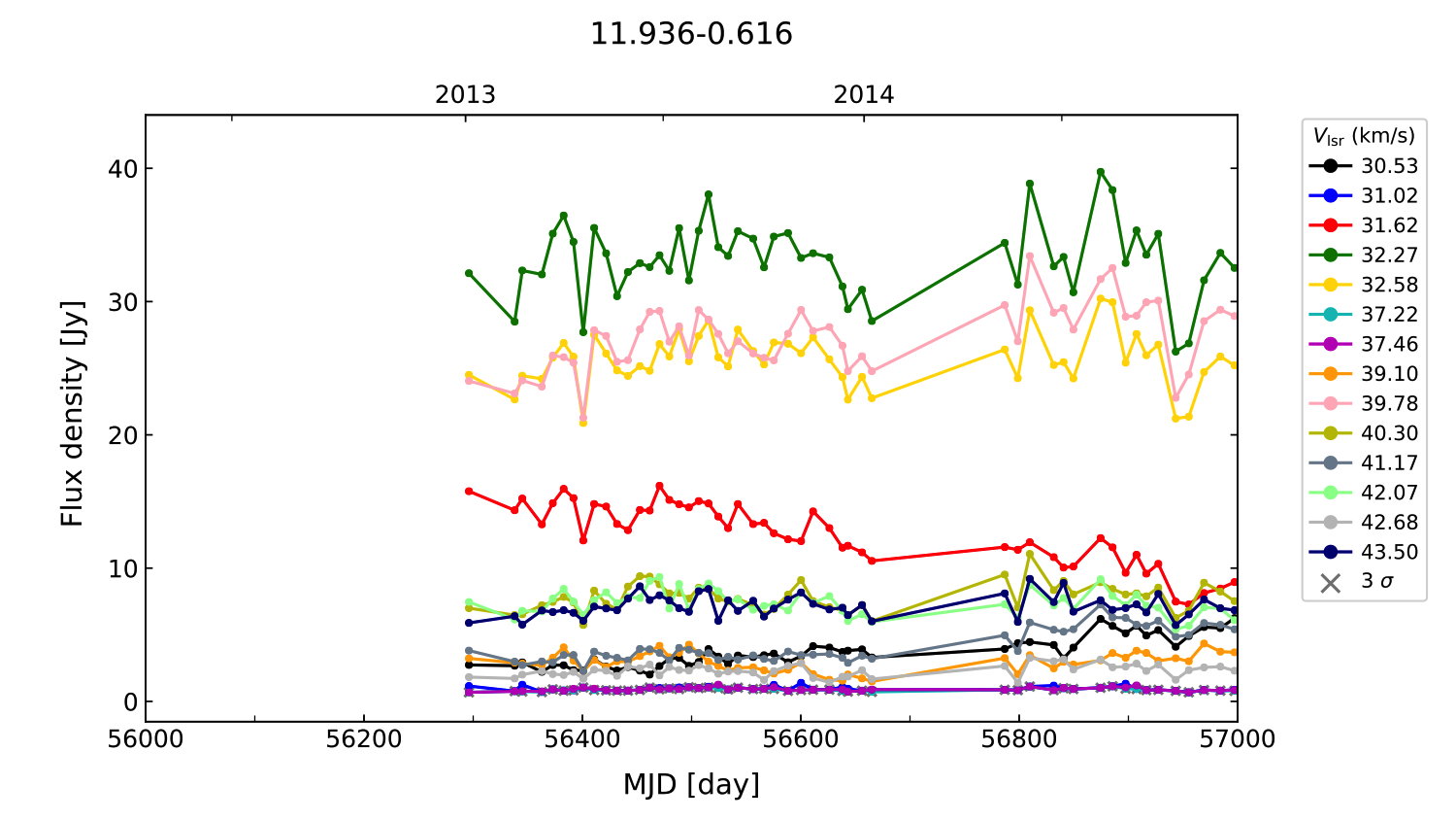 (L,B) = (011.936, -00.616) (RA, DEC [J2000]) = (18 14 00.89, -18 53 26.600)