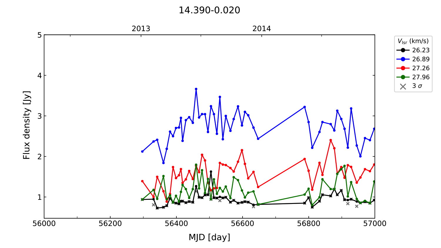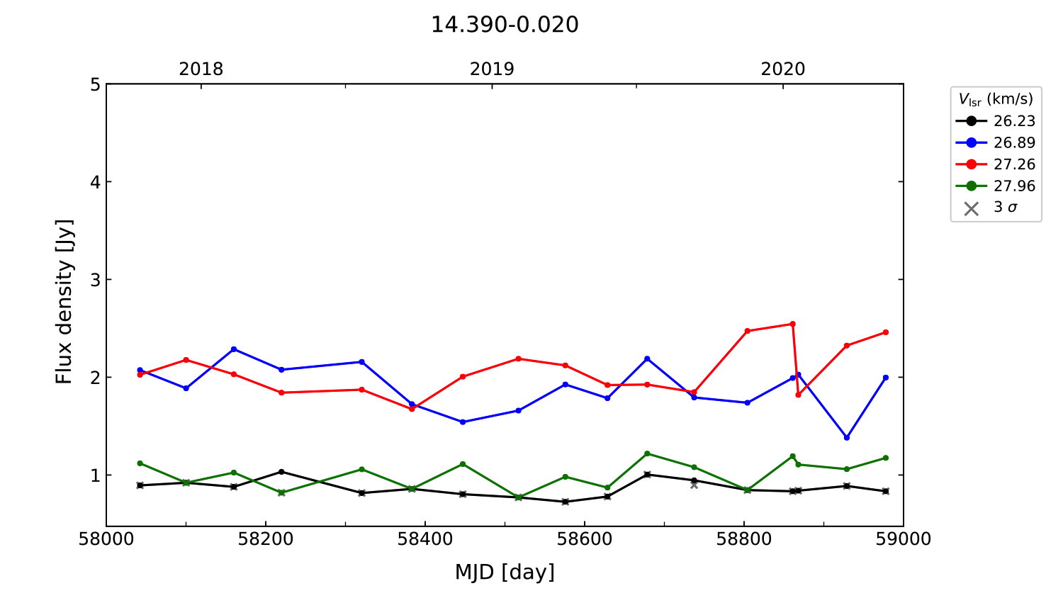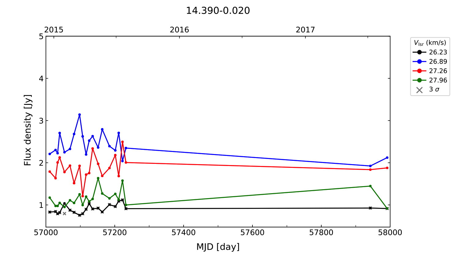 (L,B) = (014.390, -00.020) (RA, DEC [J2000]) = (18 16 43.77, -16 27 01.000)