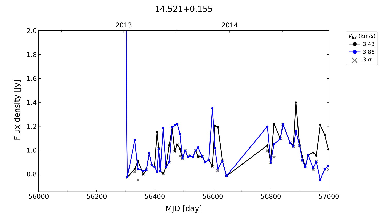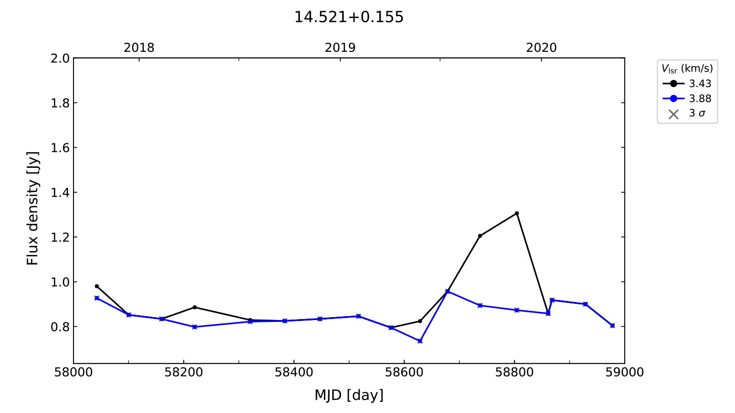 (L,B) = (014.521, 000.155) (RA, DEC [J2000]) = (18 16 20.73, -16 15 05.500)