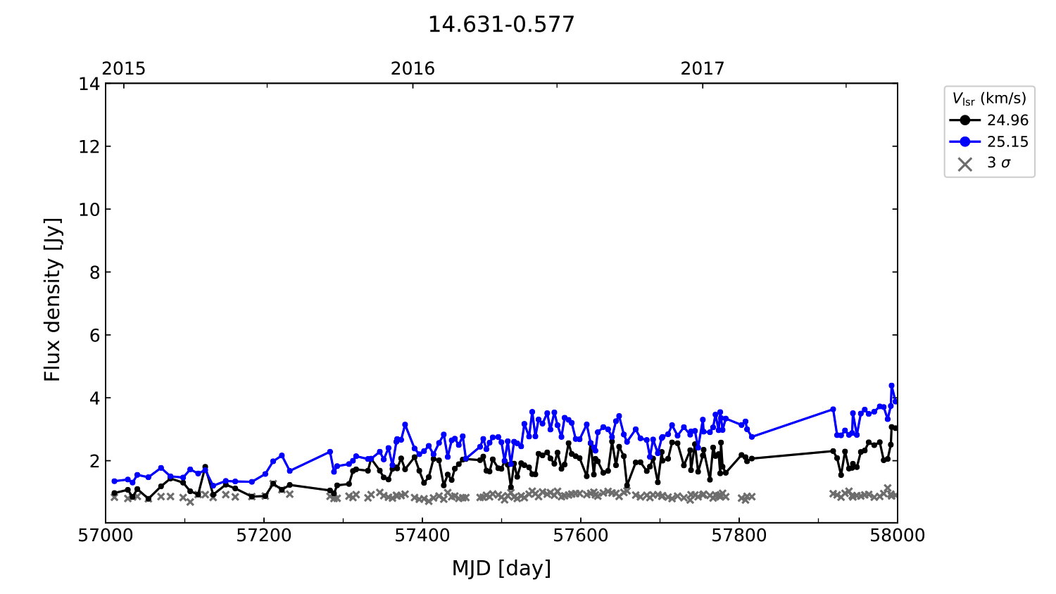 (L,B) = (014.631, -00.577) (RA, DEC [J2000]) = (18 19 15.21, -16 30 04.500)