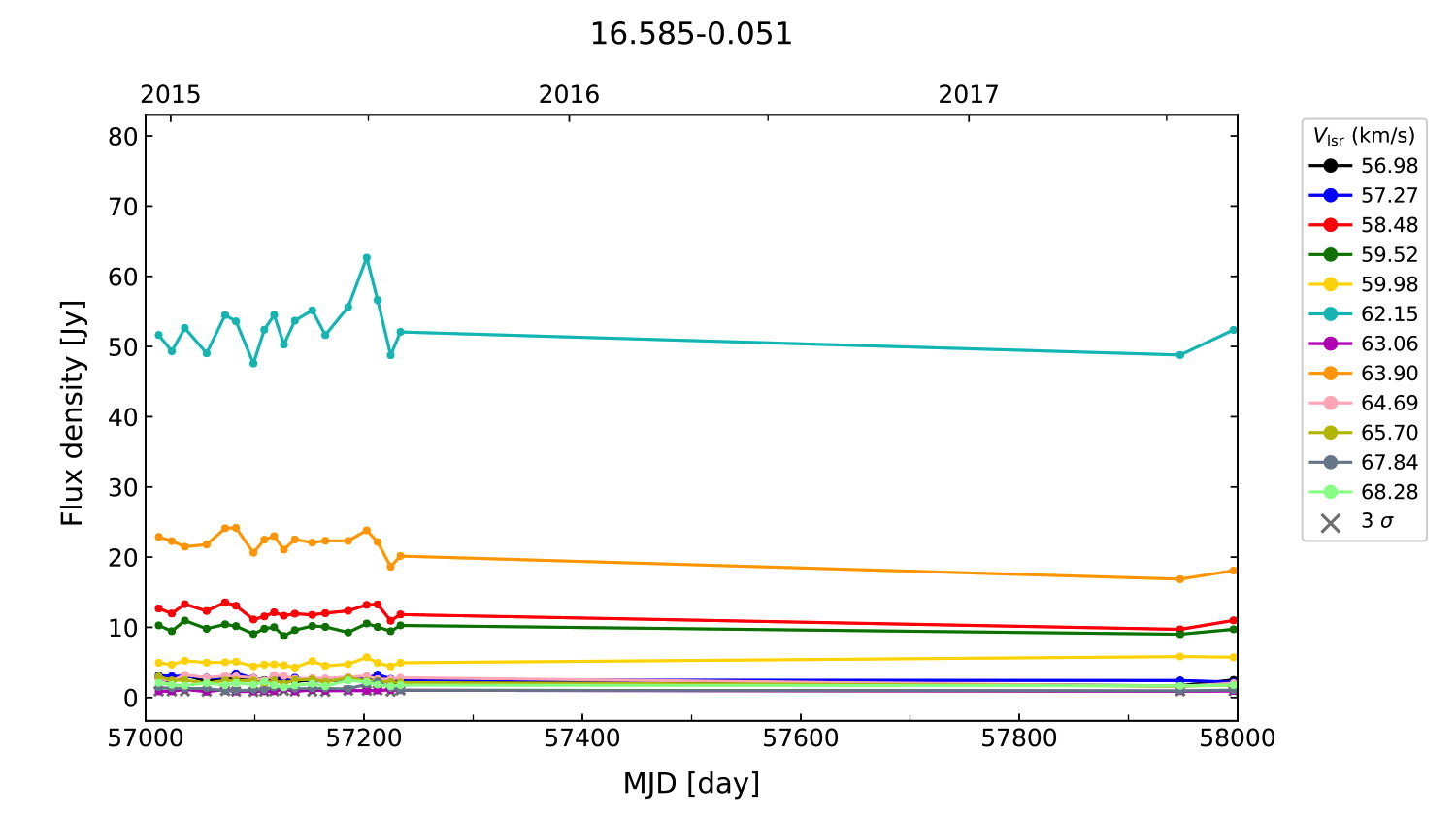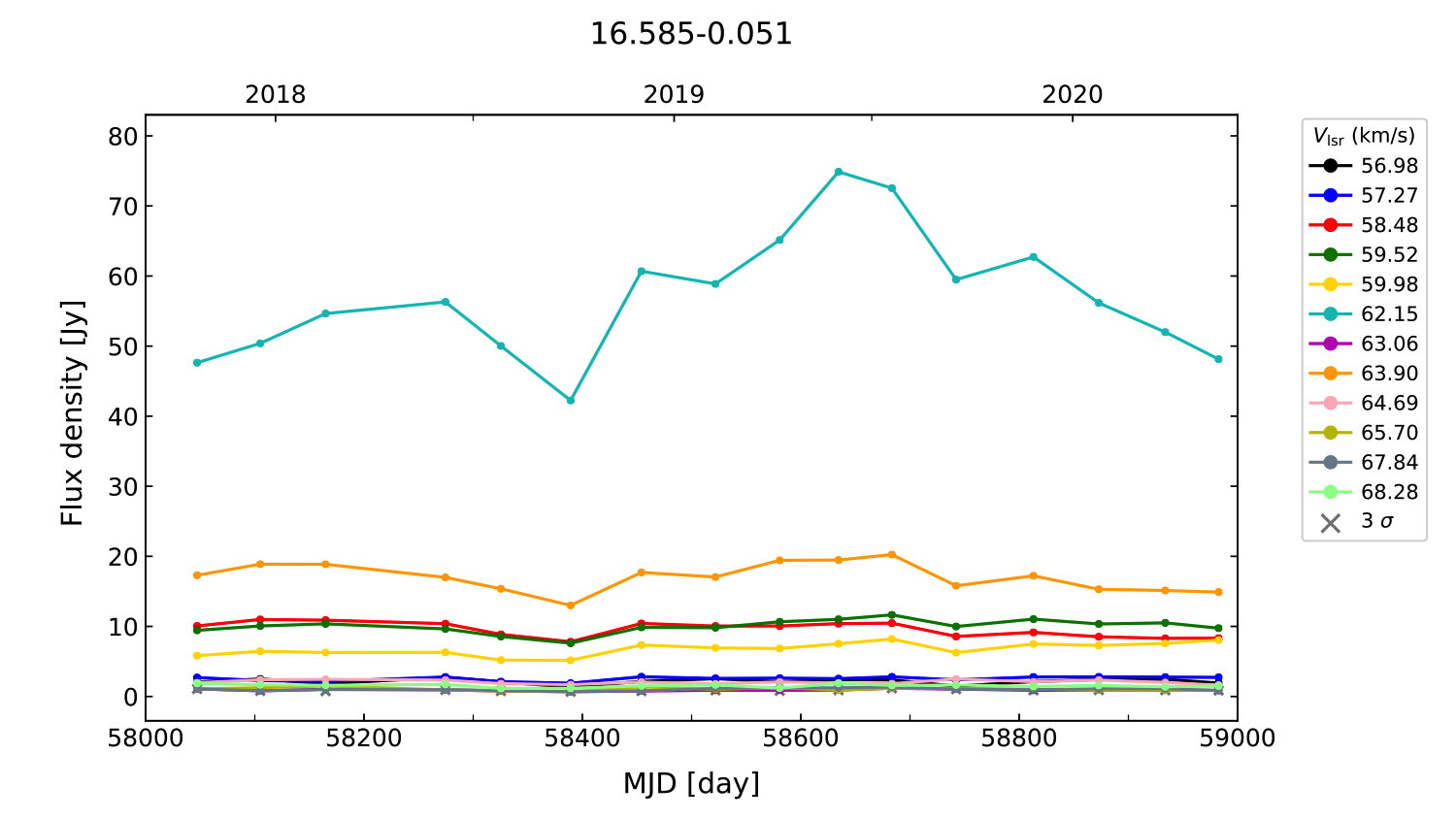 (L,B) = (016.585, -00.051) (RA, DEC [J2000]) = (18 21 09.13, -14 31 48.500)