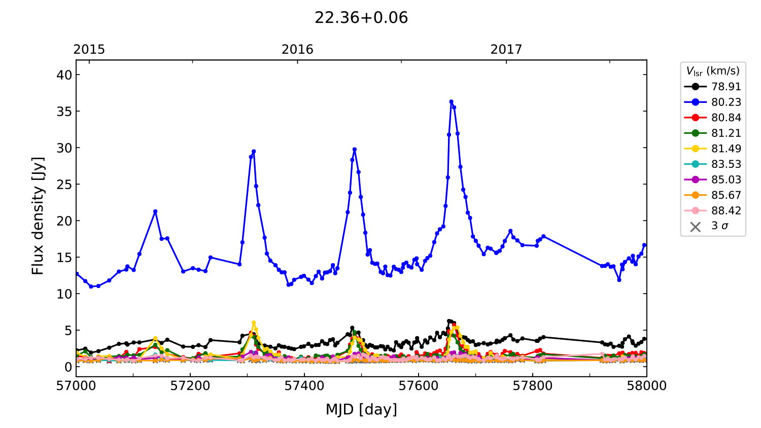 (L,B) = (022.356, 000.066) (RA, DEC [J2000]) = (18 31 44.13, -09 22 12.500)
