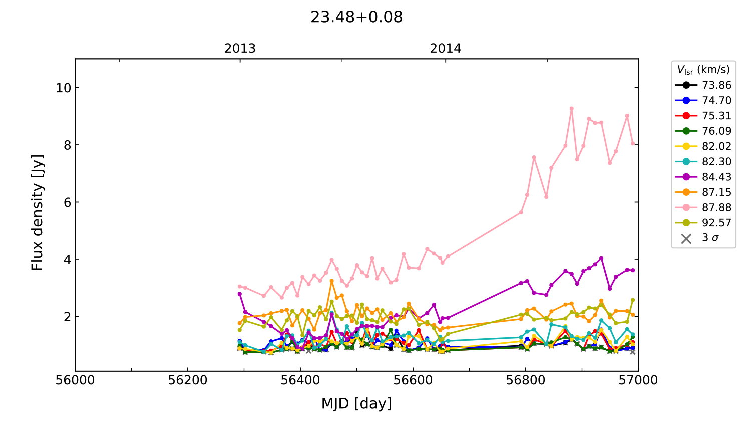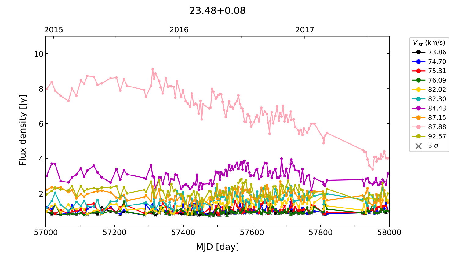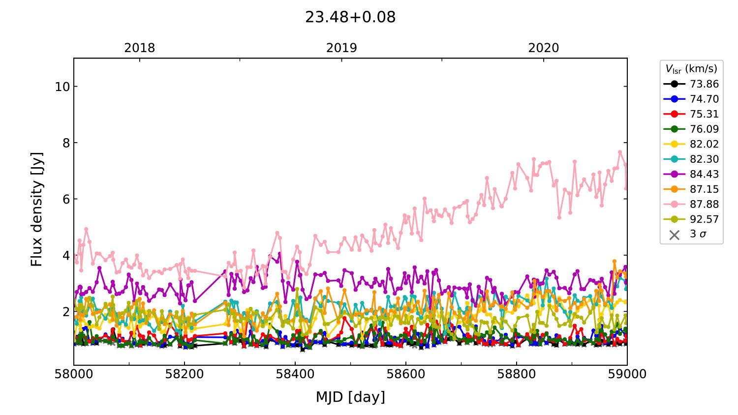 (L,B) = (023.484, 000.097) (RA, DEC [J2000]) = (18 33 44.05, -08 21 20.500)