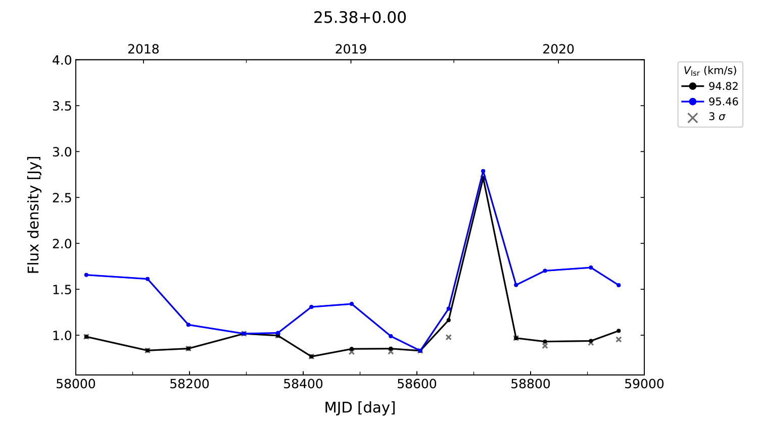 (L,B) = (025.386, 000.005) (RA, DEC [J2000]) = (18 37 35.52, -06 42 34.500)