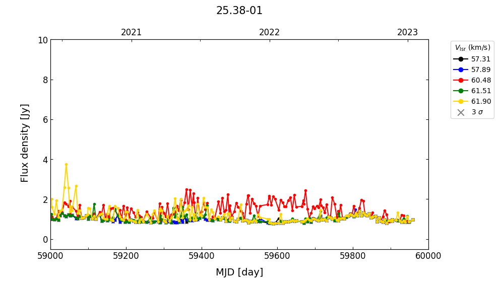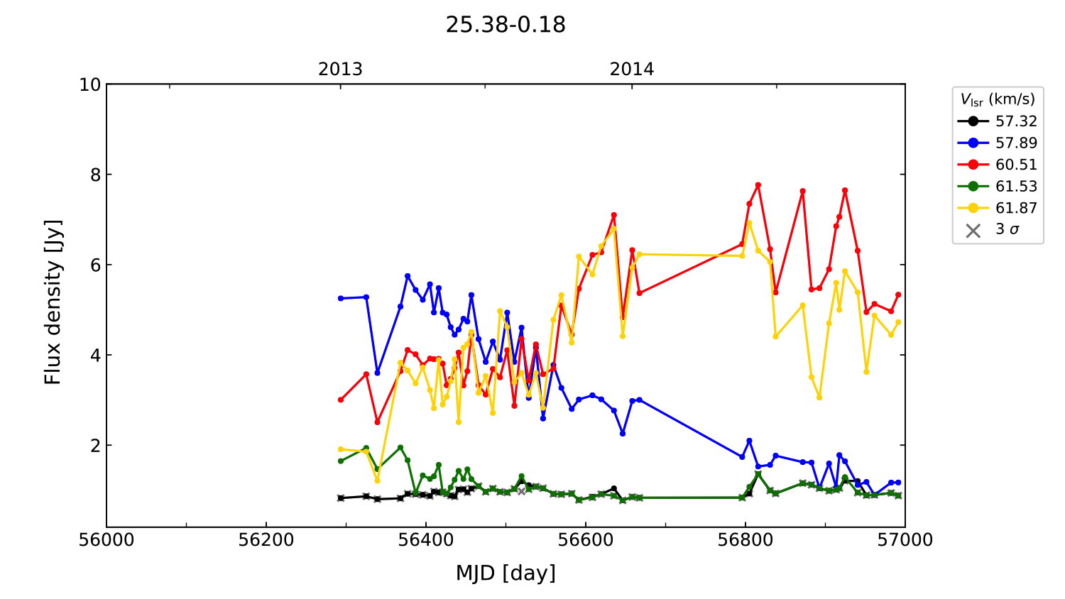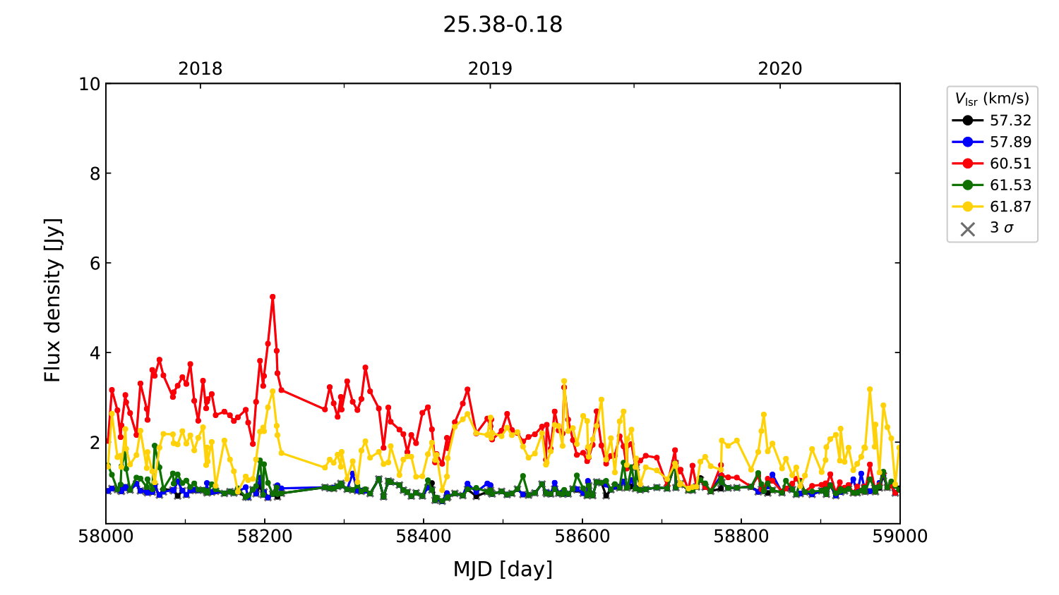 (L,B) = (025.382, -00.177) (RA, DEC [J2000]) = (18 38 14.30, -06 47 47.000)