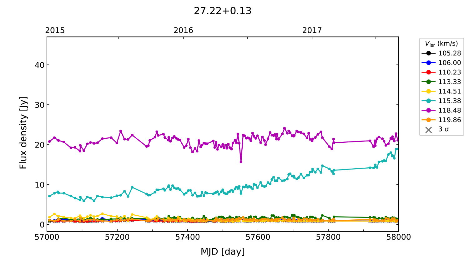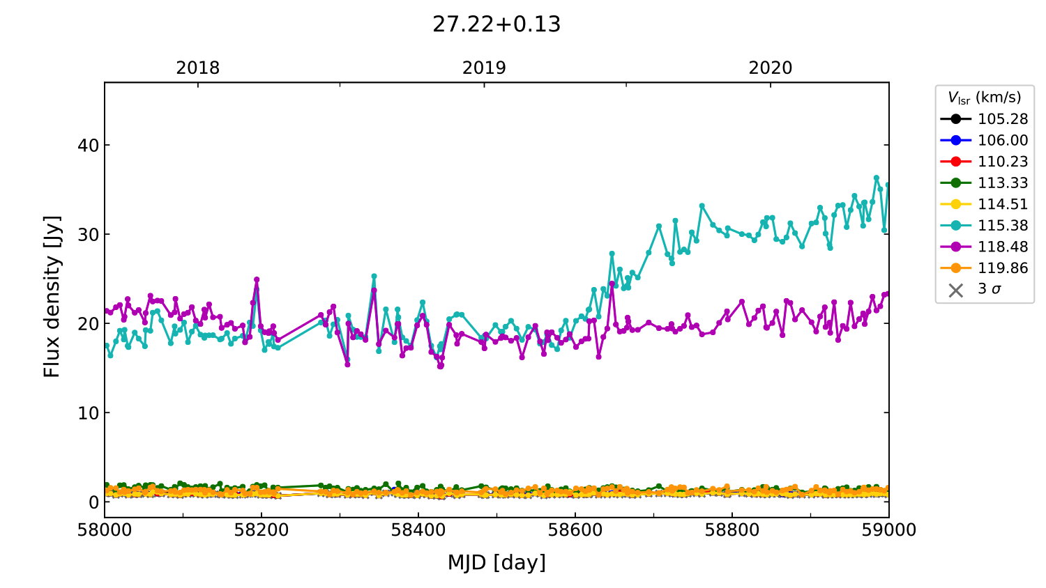 (L,B) = (027.223, 000.137) (RA, DEC [J2000]) = (18 40 30.43, -05 00 59.000)