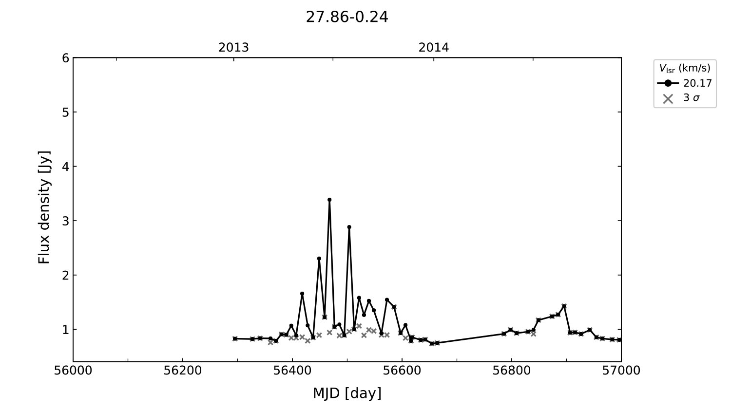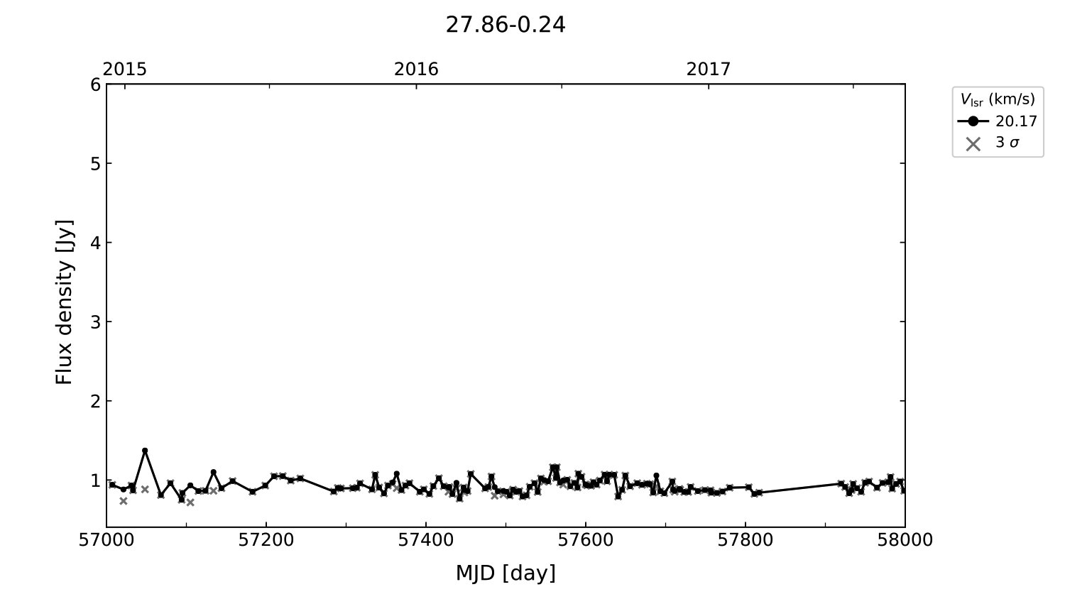 (L,B) = (027.869, -00.234) (RA, DEC [J2000]) = (18 43 01.10, -04 36 41.000)