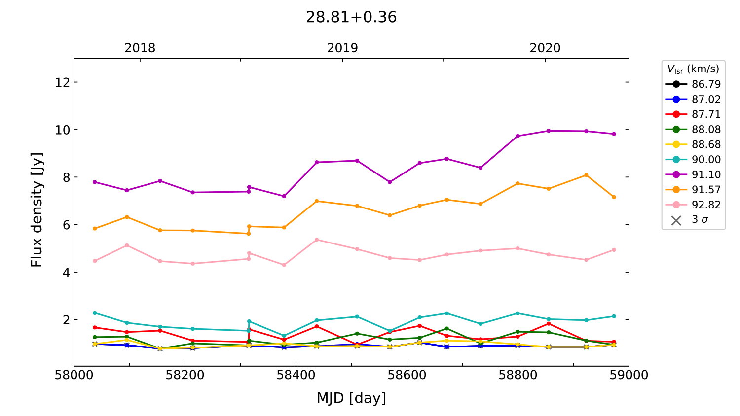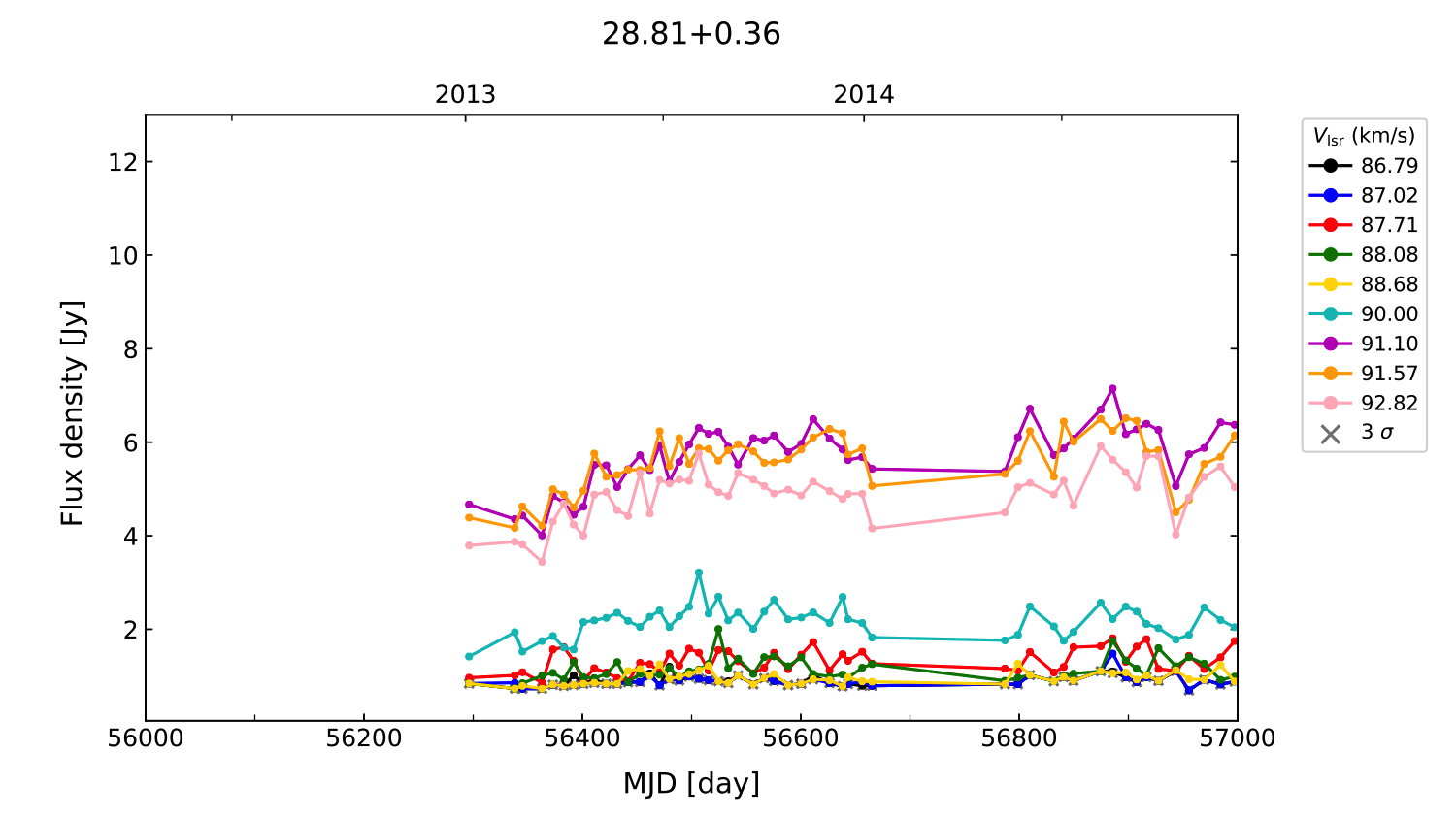 (L,B) = (028.810, 000.360) (RA, DEC [J2000]) = (18 42 37.49, -03 30 12.500)