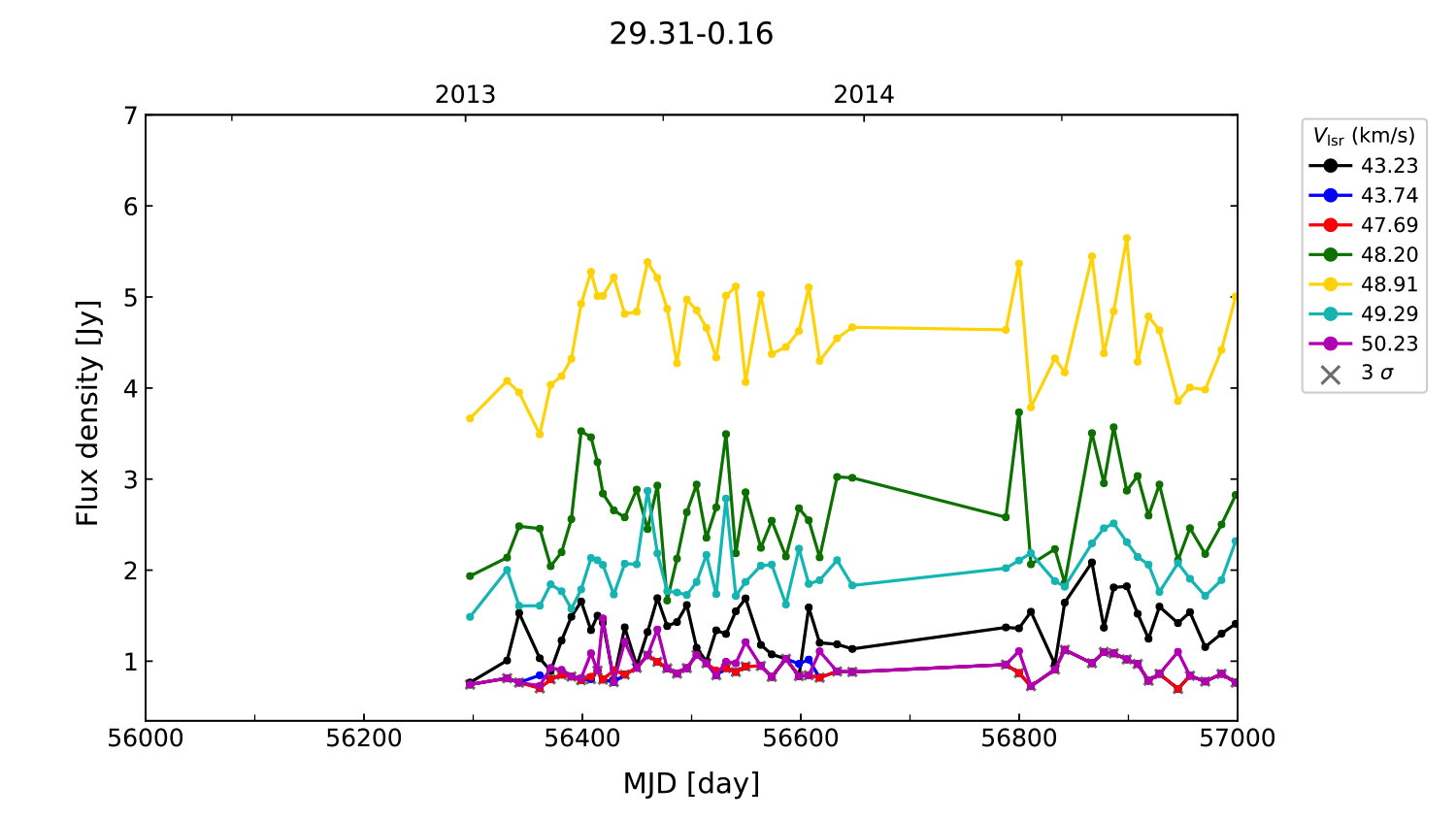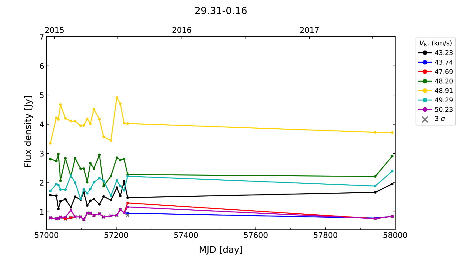 (L,B) = (029.313, -00.165) (RA, DEC [J2000]) = (18 45 24.97, -03 17 44.500)