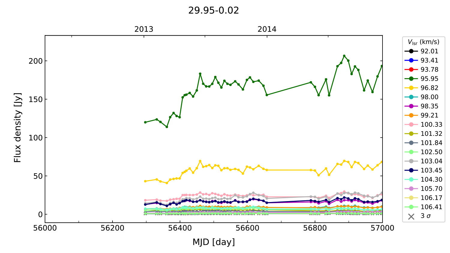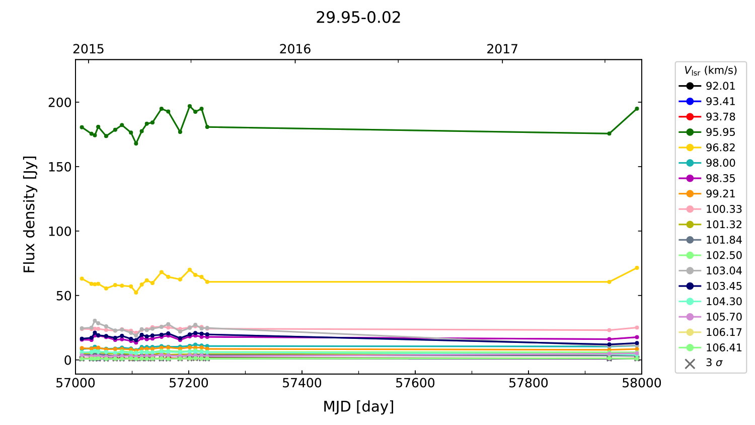 (L,B) = (029.956, -00.016) (RA, DEC [J2000]) = (18 46 03.74, -02 39 21.430)