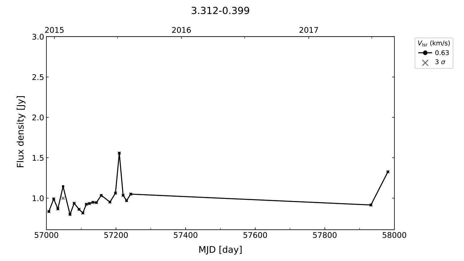 (L,B) = (003.312, -00.399) (RA, DEC [J2000]) = (17 54 50.11, -26 17 51.500)