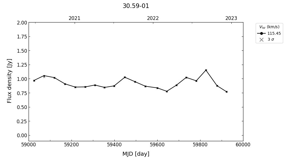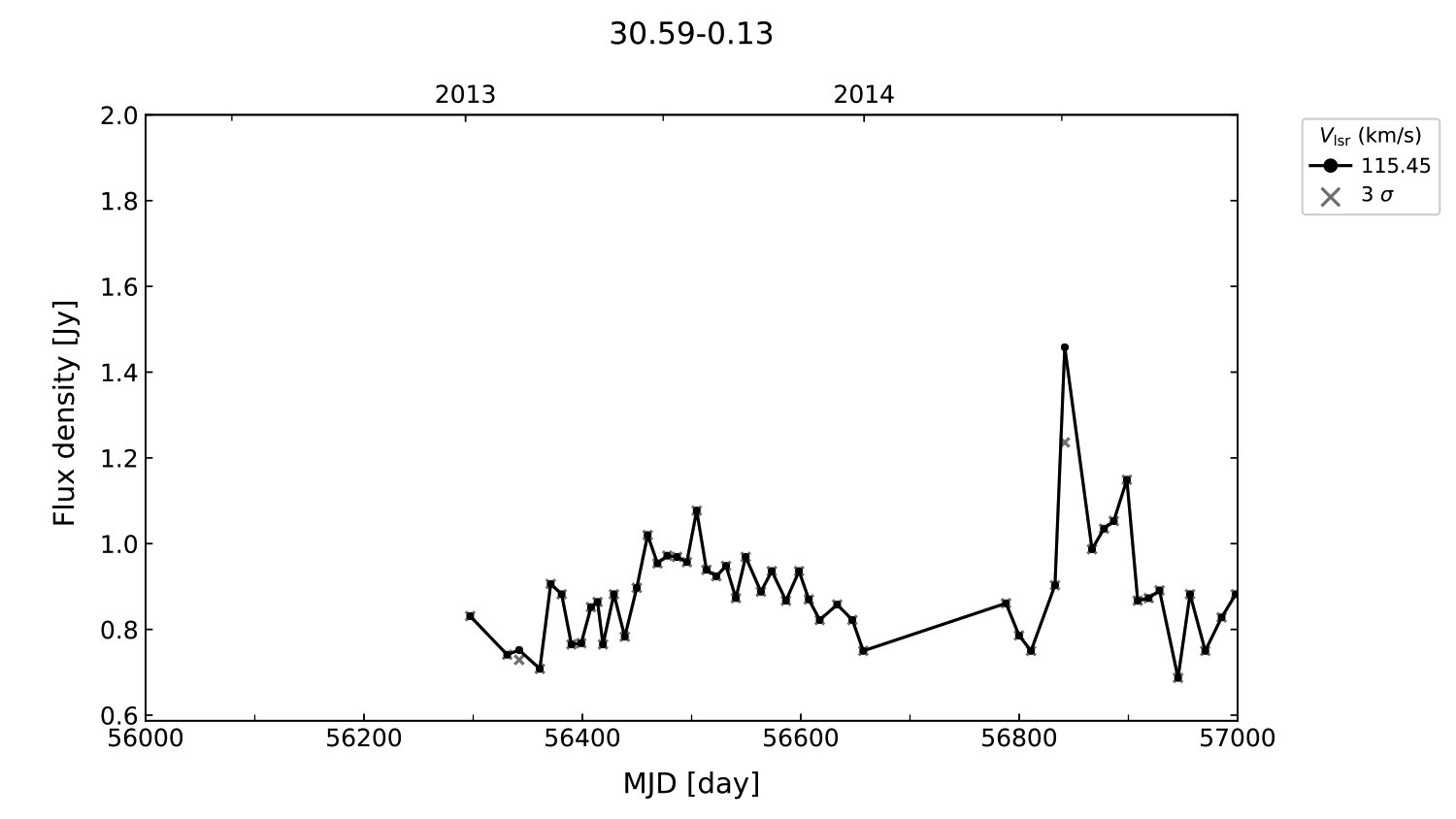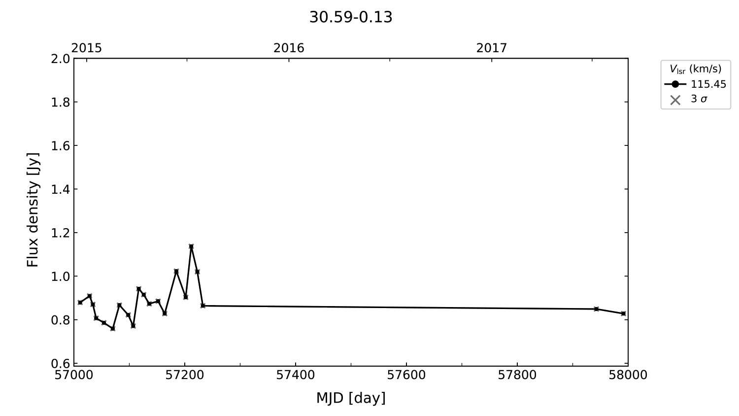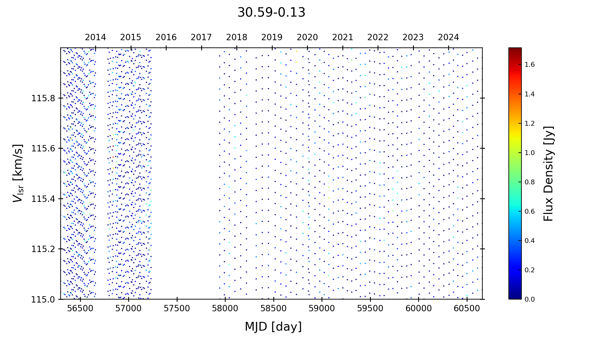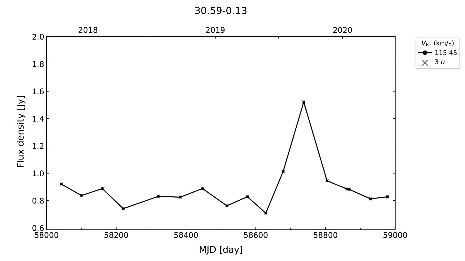 (L,B) = (030.587, -00.131) (RA, DEC [J2000]) = (18 47 37.50, -02 08 46.000)