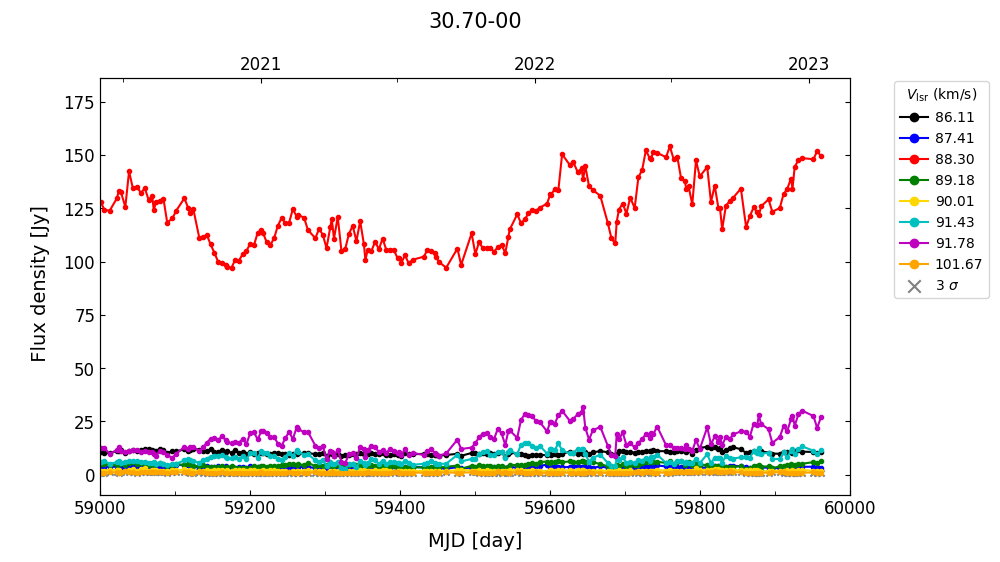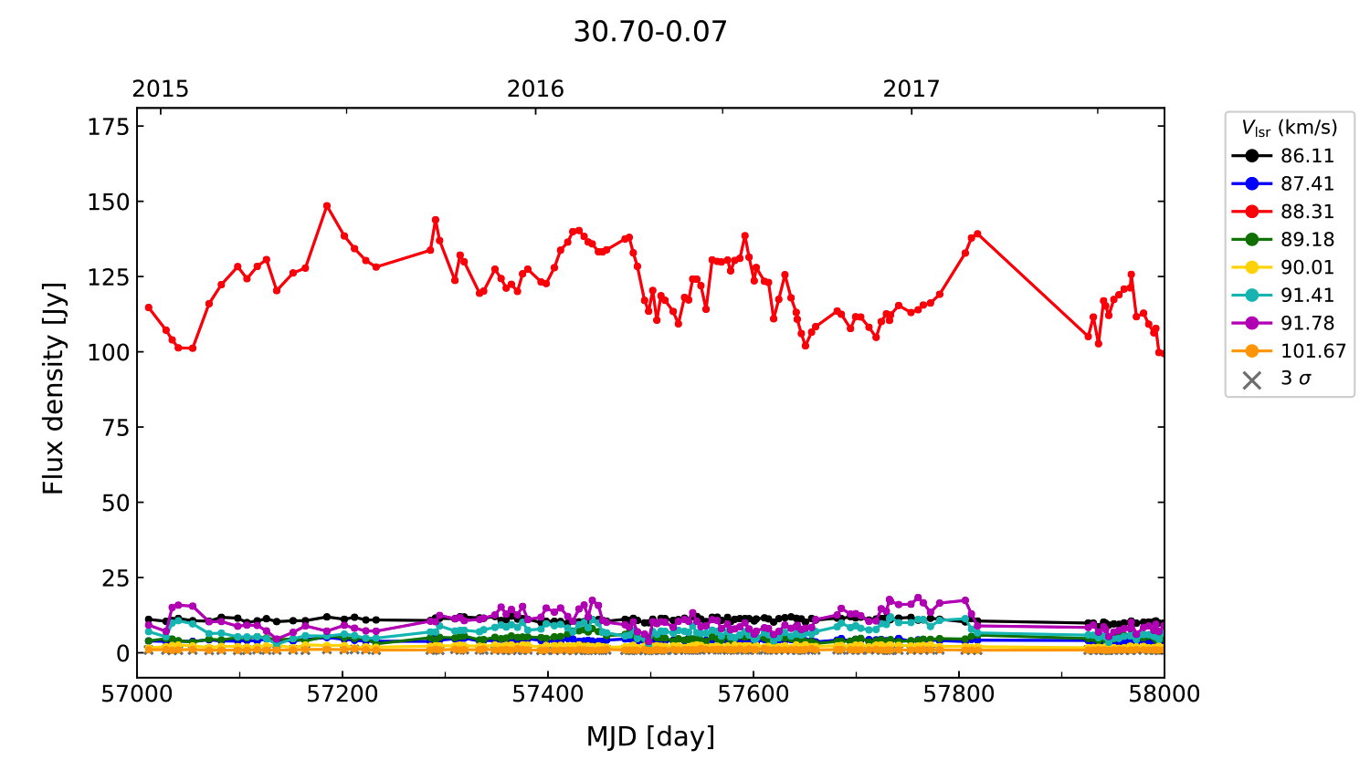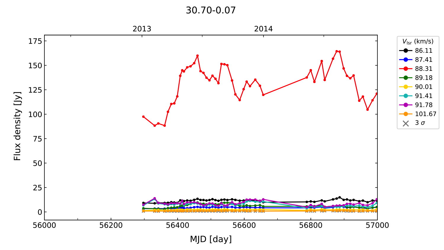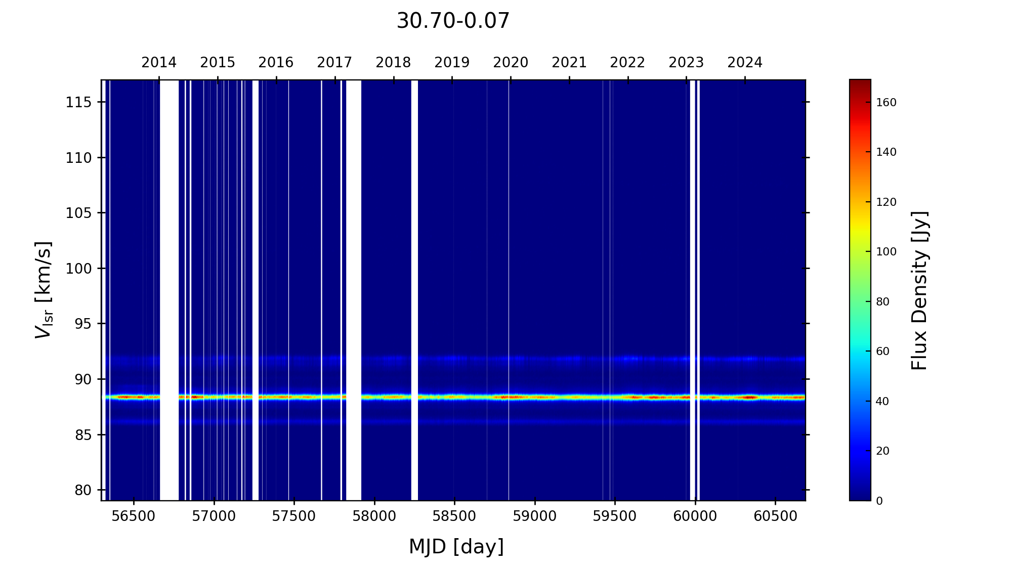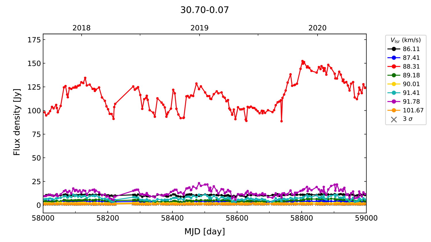 (L,B) = (030.700, -00.070) (RA, DEC [J2000]) = (18 47 36.90, -02 01 05.000)