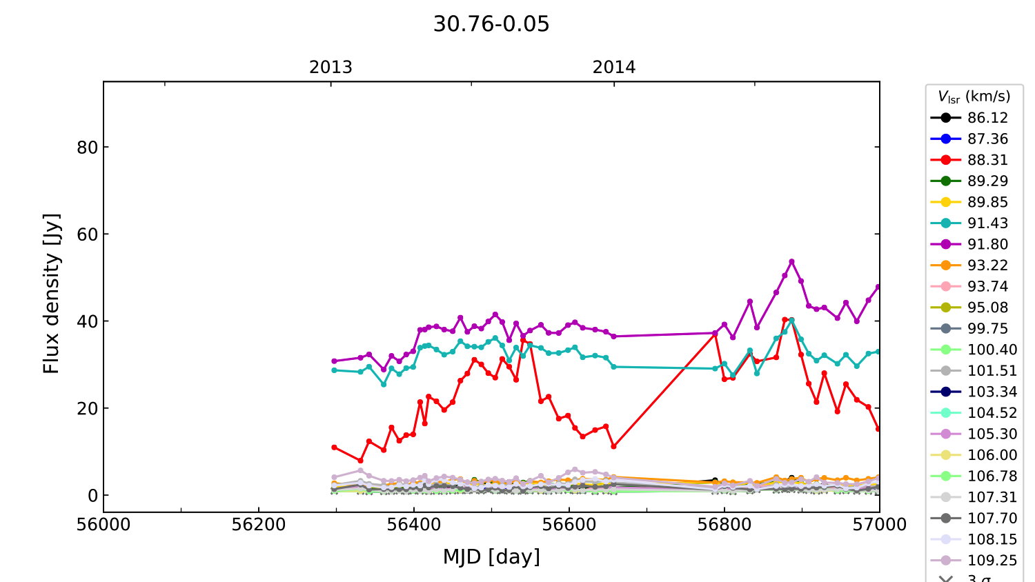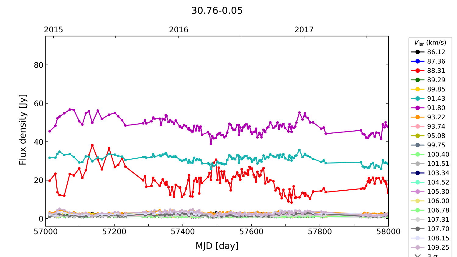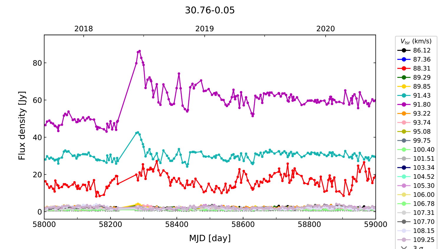 (L,B) = (030.761, -00.052) (RA, DEC [J2000]) = (18 47 39.73, -01 57 22.000)