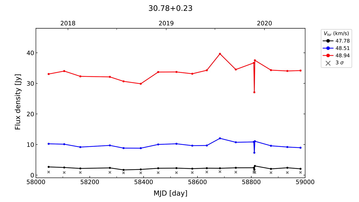 (L,B) = (030.781, 000.231) (RA, DEC [J2000]) = (18 46 41.52, -01 48 32.000)