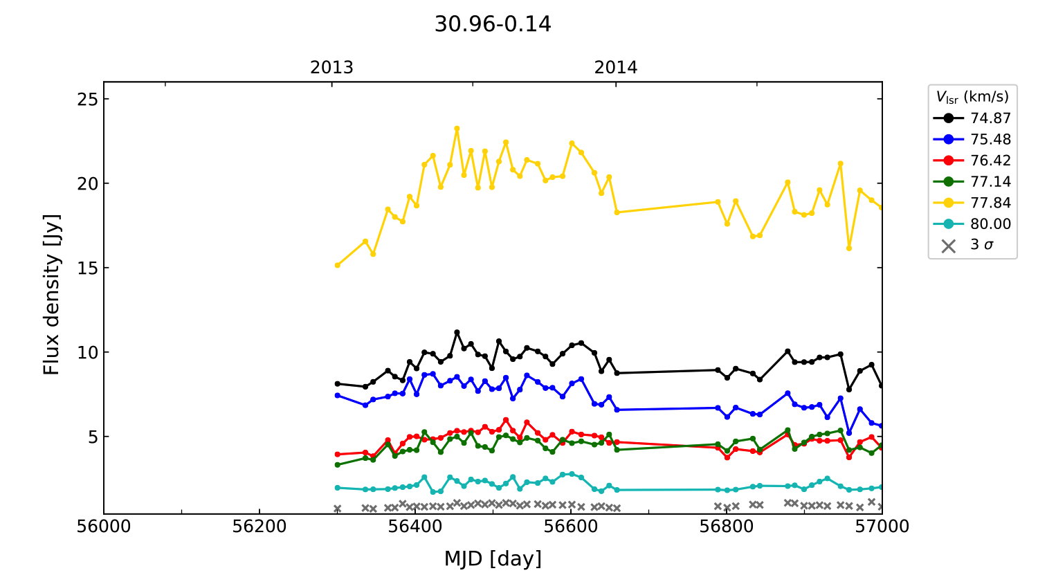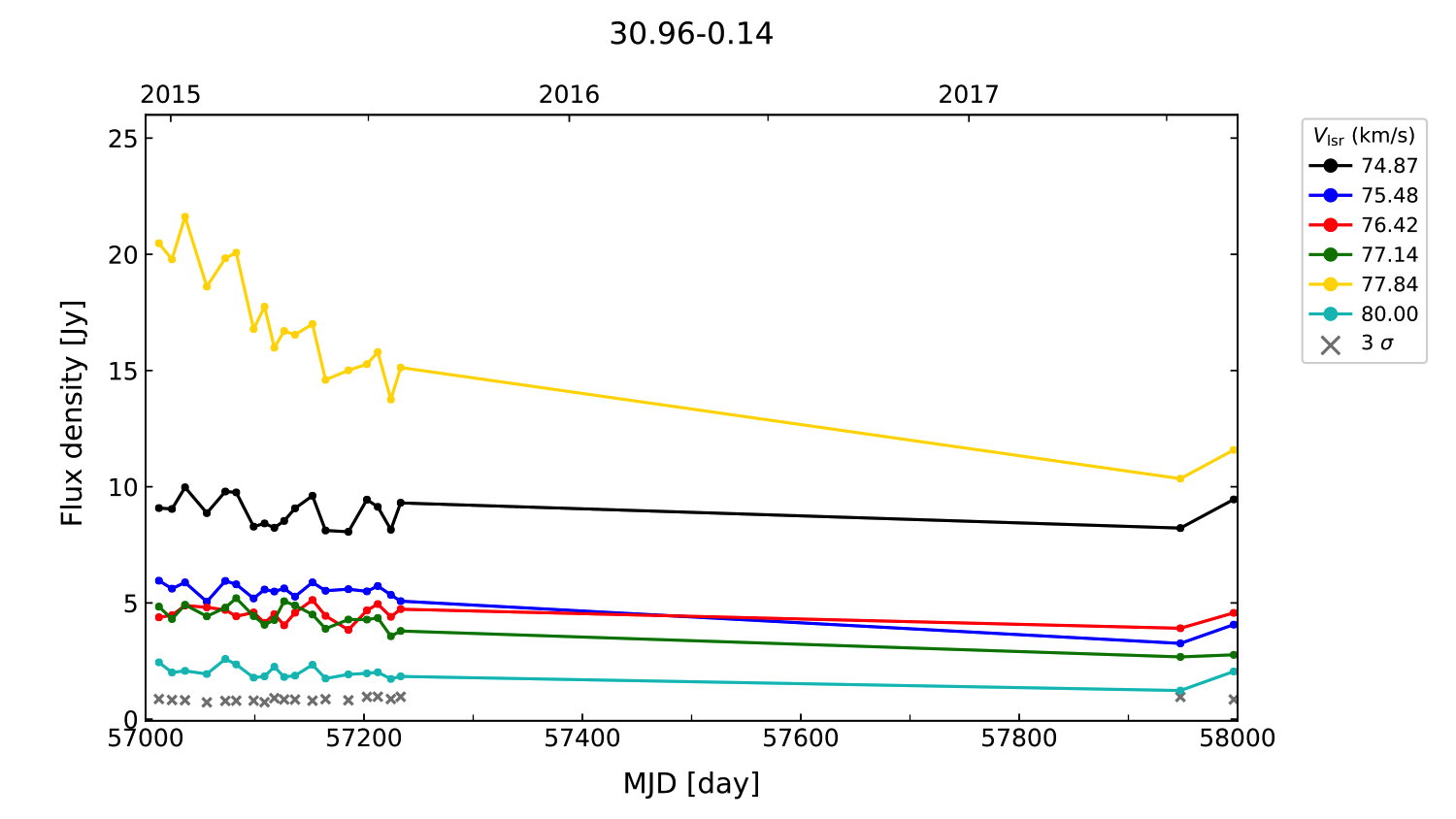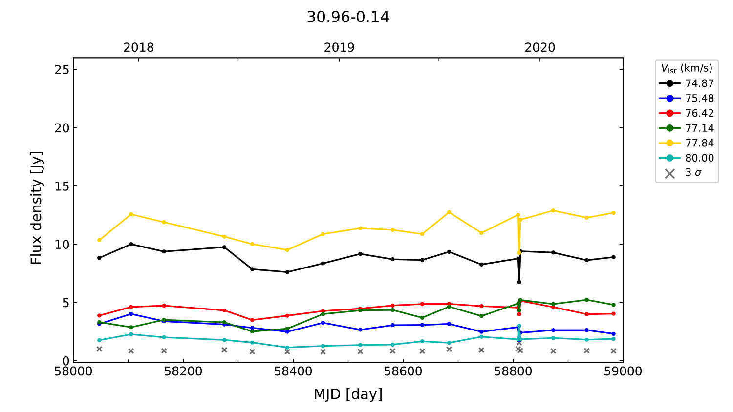 (L,B) = (030.961, -00.137) (RA, DEC [J2000]) = (18 48 19.70, -01 48 59.000)