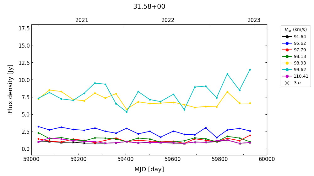 (L,B) = (031.567, 000.059) (RA, DEC [J2000]) = (18 48 44.30, -01 11 18.000)