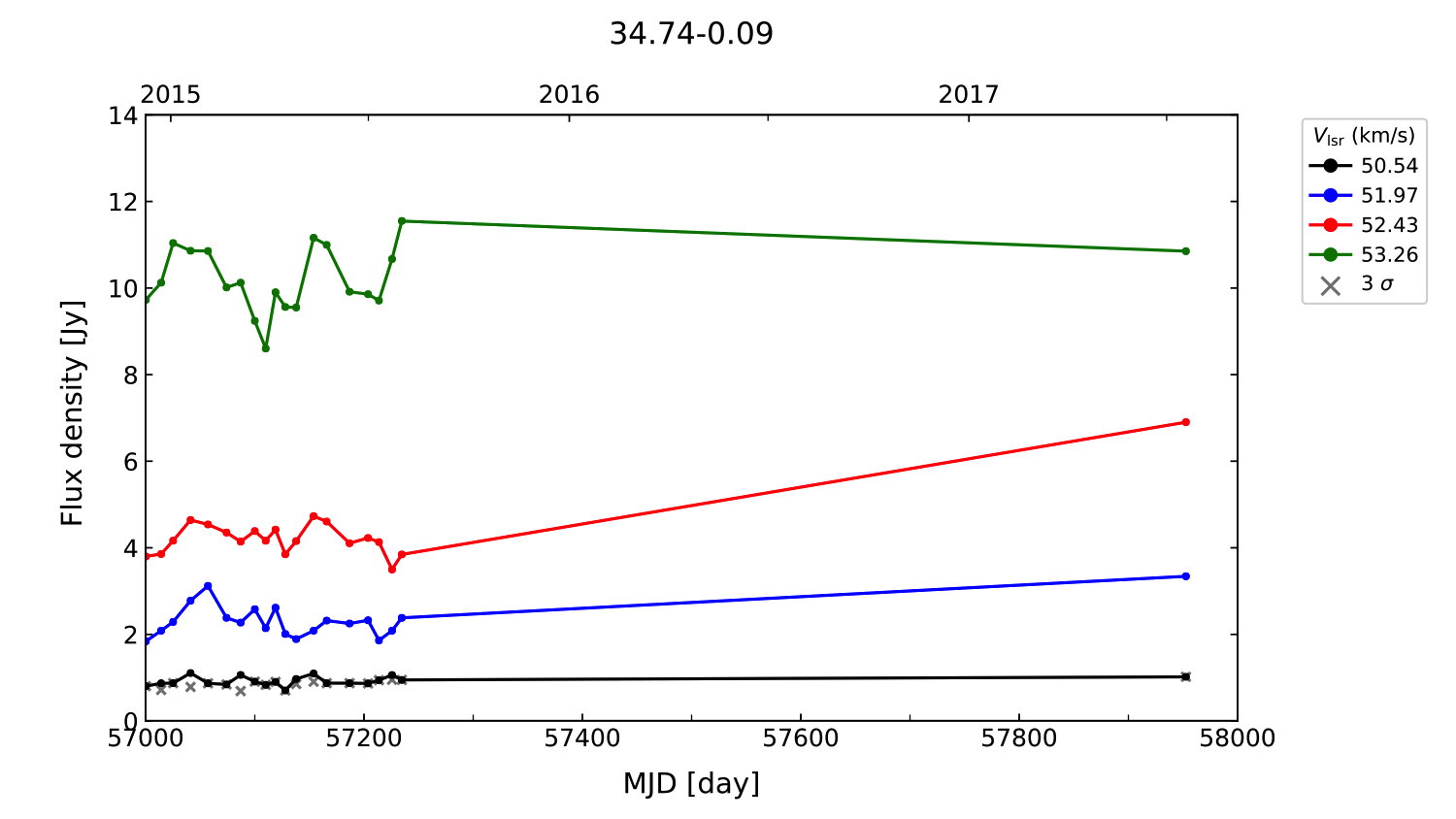 (L,B) = (034.743, -00.088) (RA, DEC [J2000]) = (18 55 03.40, +01 34 17.000)