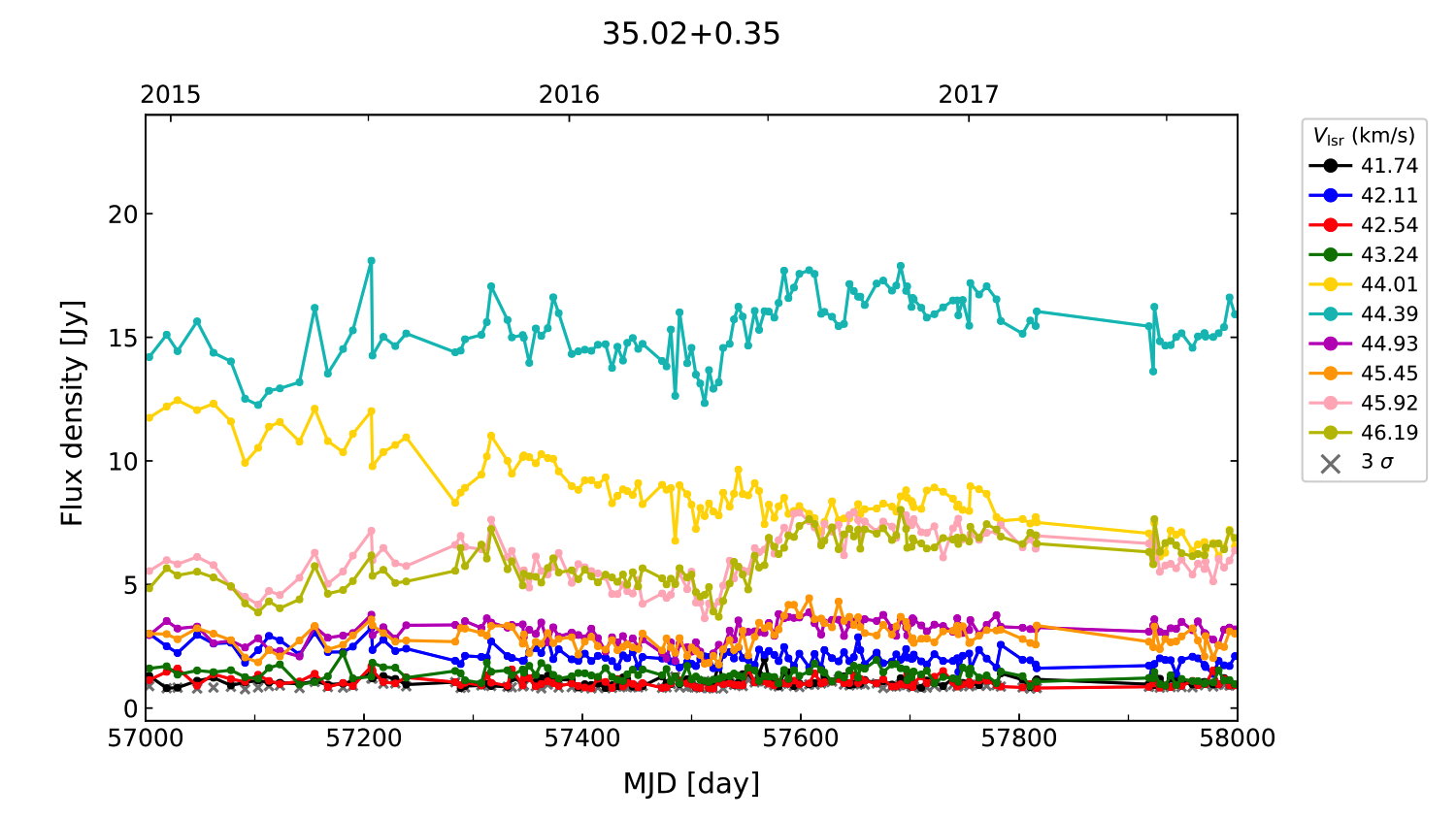 (L,B) = (035.025, 000.350) (RA, DEC [J2000]) = (18 54 00.66, +02 01 19.230)