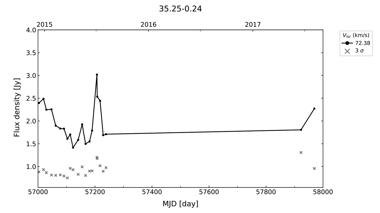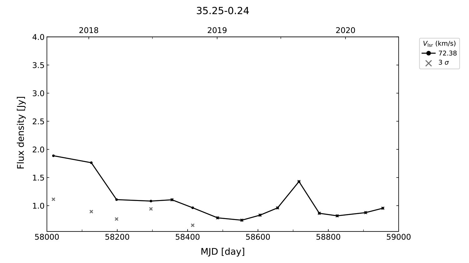 (L,B) = (035.247, -00.237) (RA, DEC [J2000]) = (18 56 30.39, +01 57 08.880)