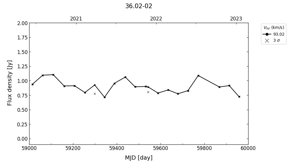 (L,B) = (036.013, -00.197) (RA, DEC [J2000]) = (18 57 45.87, +02 39 05.670)