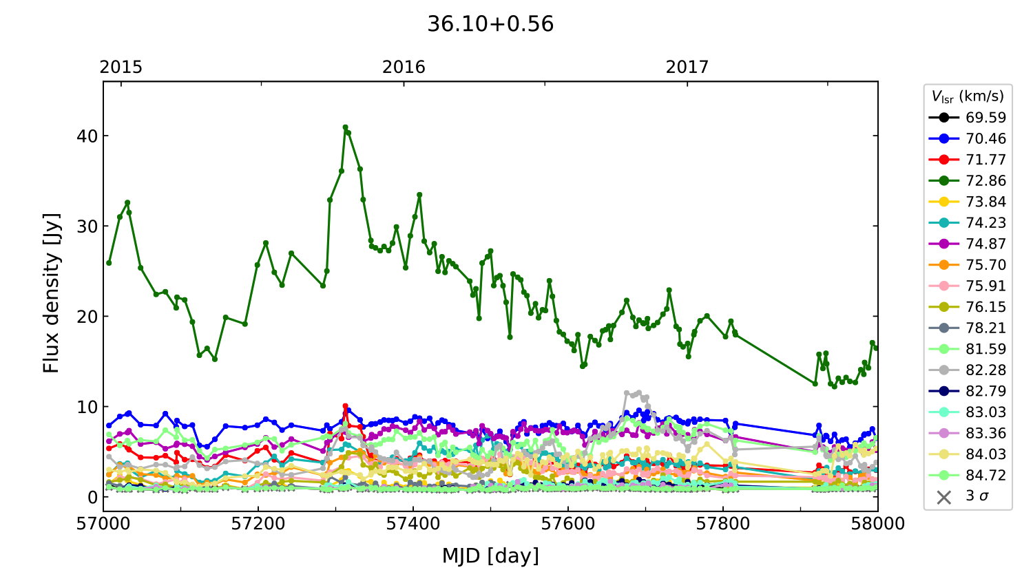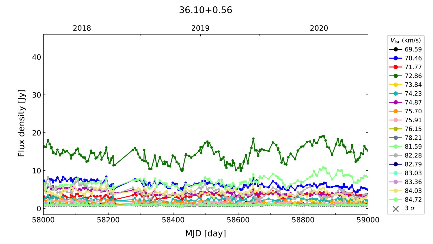 (L,B) = (036.107, 000.554) (RA, DEC [J2000]) = (18 55 15.60, +03 04 42.000)