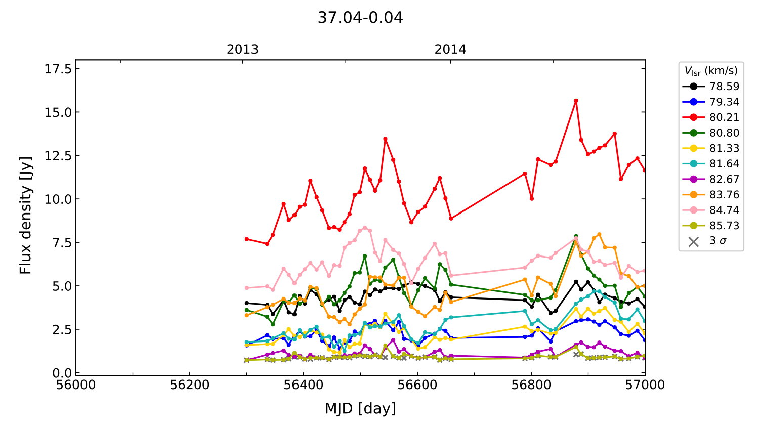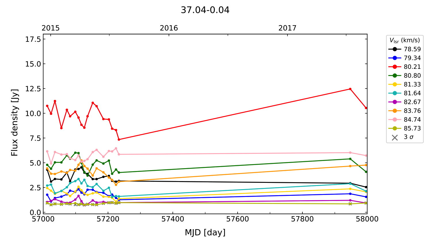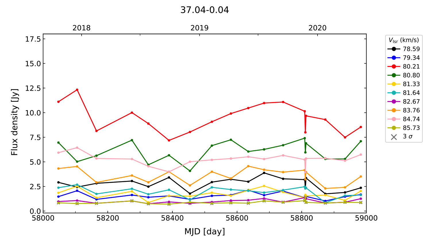 (L,B) = (037.043, -00.035) (RA, DEC [J2000]) = (18 59 04.41, +03 38 32.770)