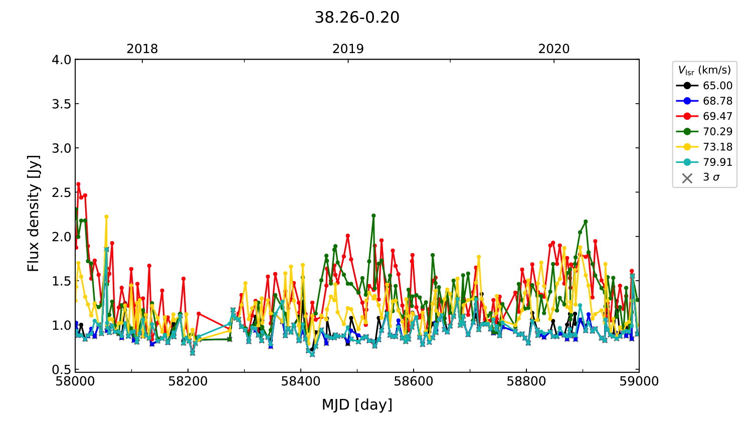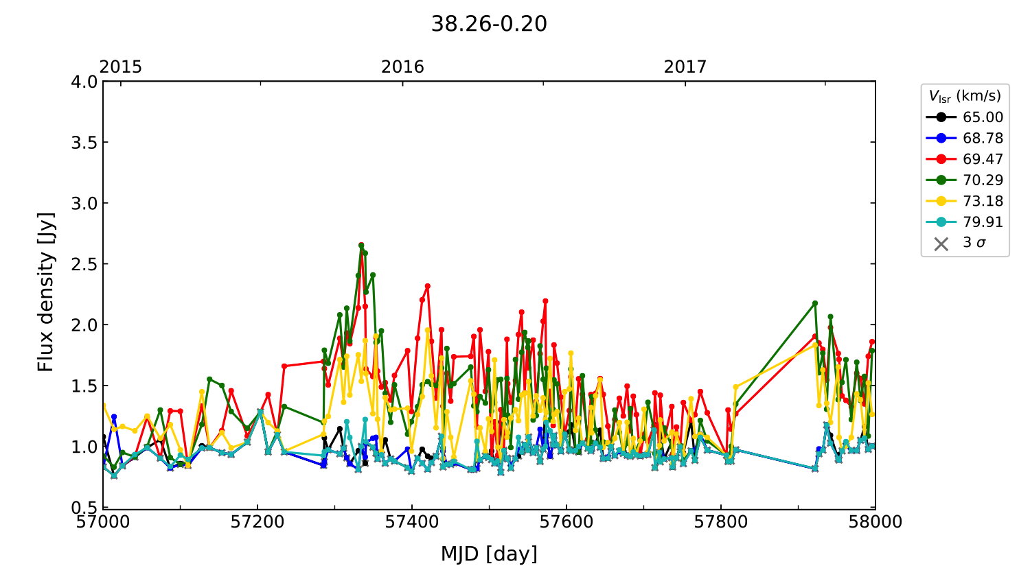 (L,B) = (038.255, -00.200) (RA, DEC [J2000]) = (19 01 52.96, +04 38 39.470)