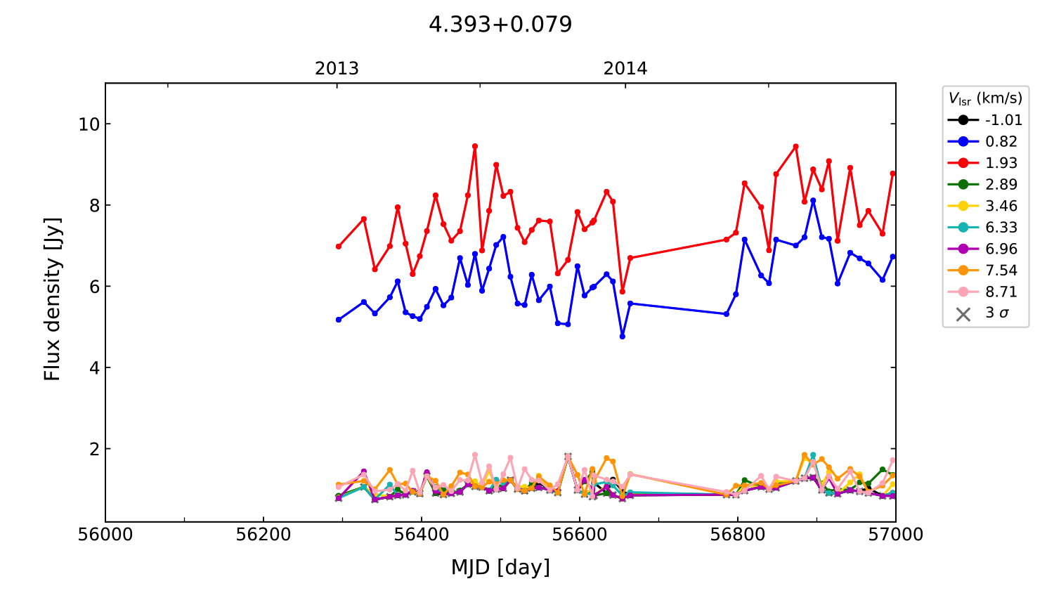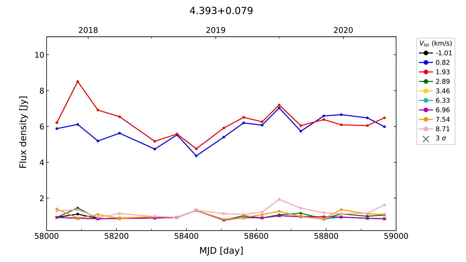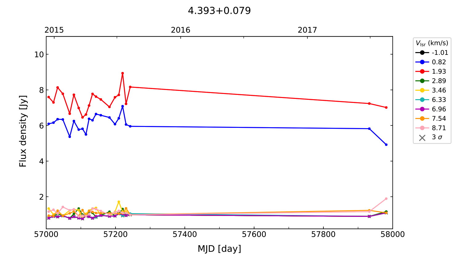 (L,B) = (004.393, 000.079) (RA, DEC [J2000]) = (17 55 25.77, -25 07 23.600)