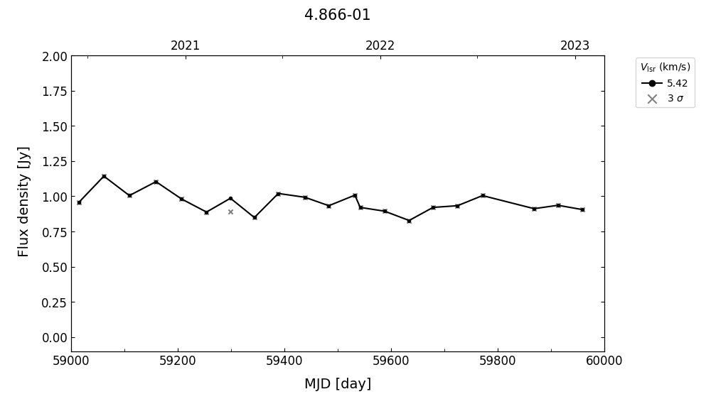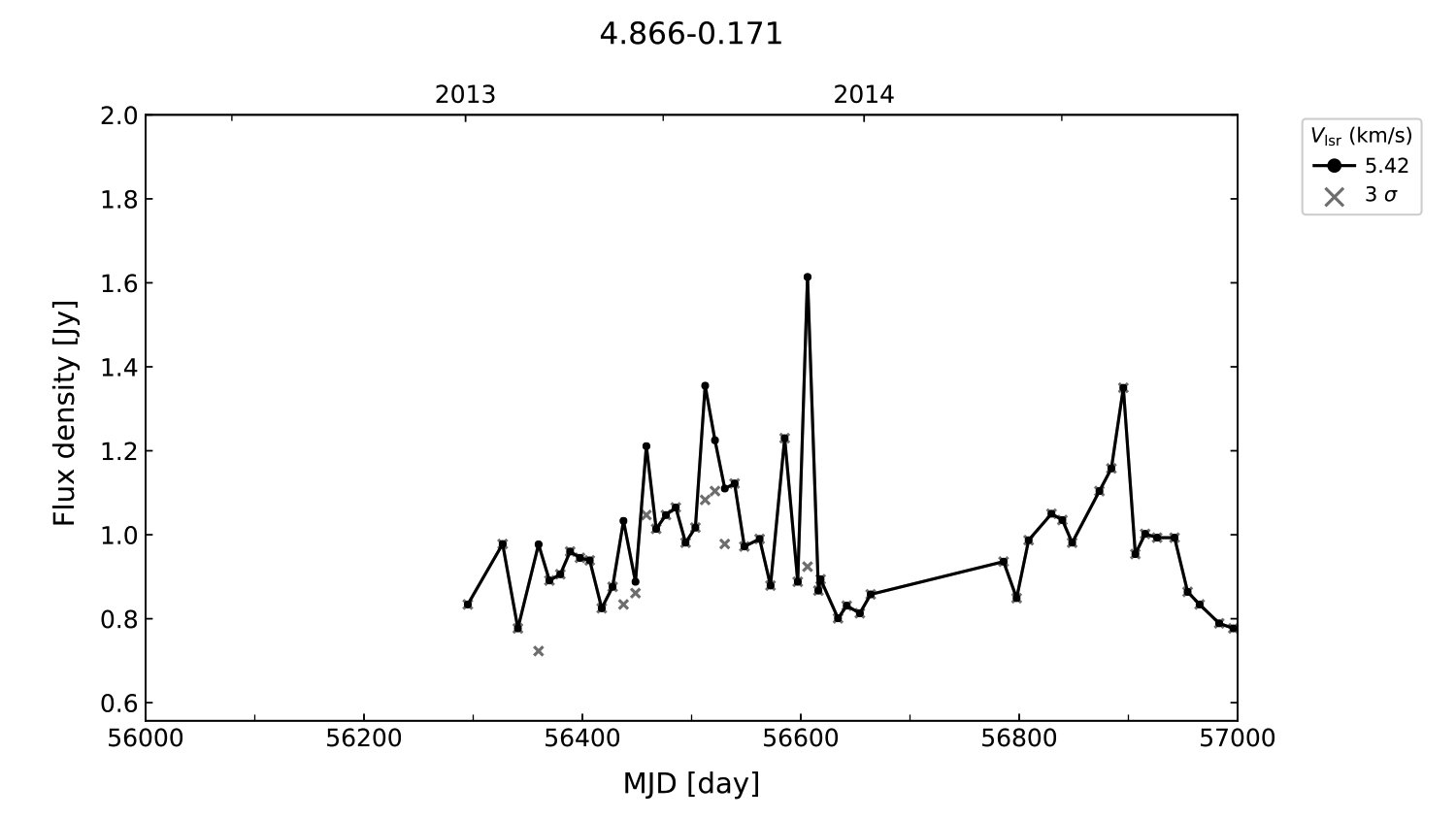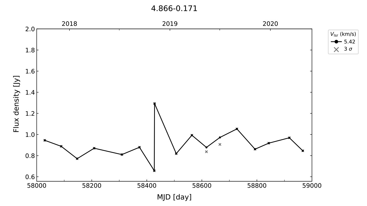 (L,B) = (004.866, -00.171) (RA, DEC [J2000]) = (17 57 25.96, -24 50 24.400)