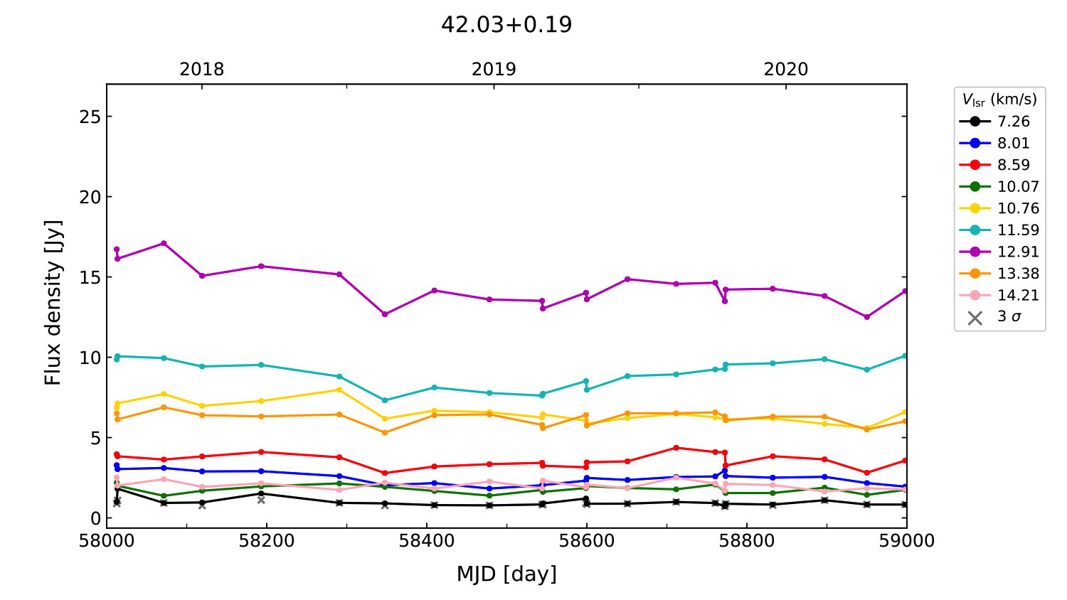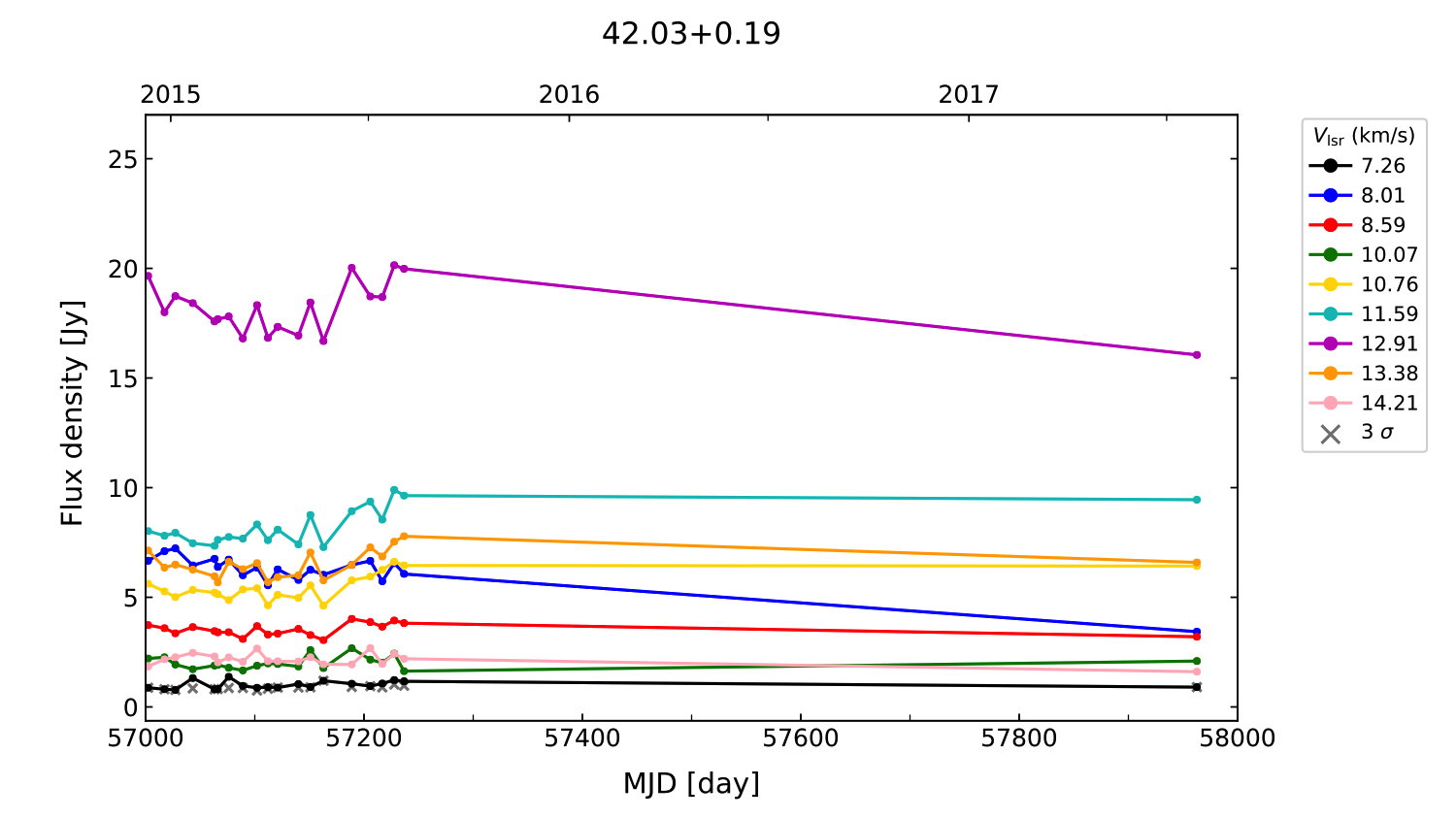 (L,B) = (042.034, 000.190) (RA, DEC [J2000]) = (19 07 28.18, +08 10 53.470)