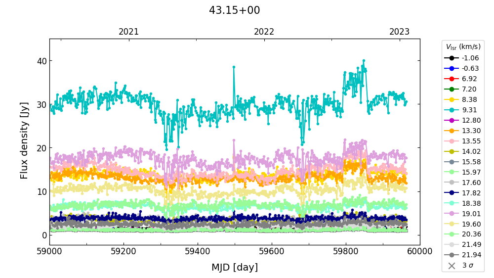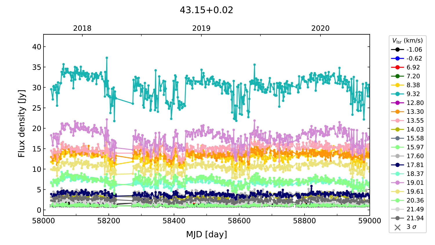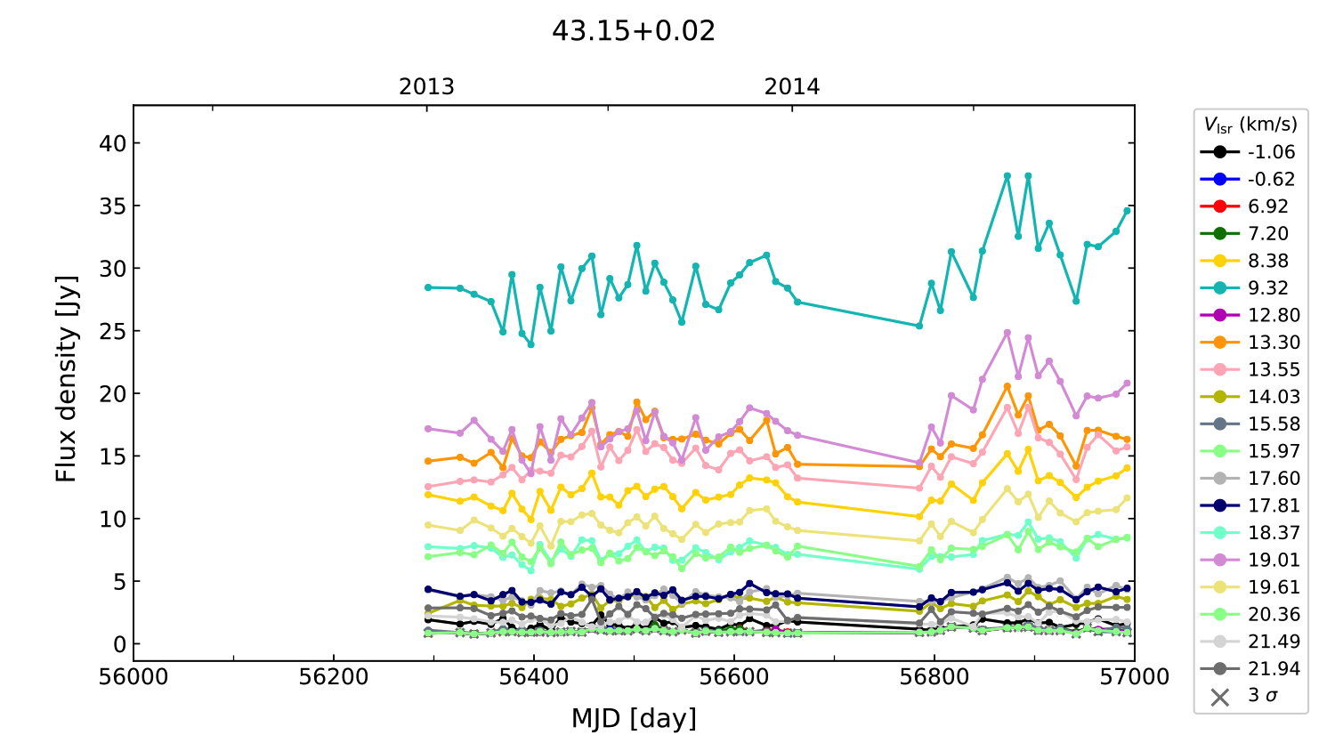 (L,B) = (043.149, 000.013) (RA, DEC [J2000]) = (19 10 11.05, +09 05 20.460)