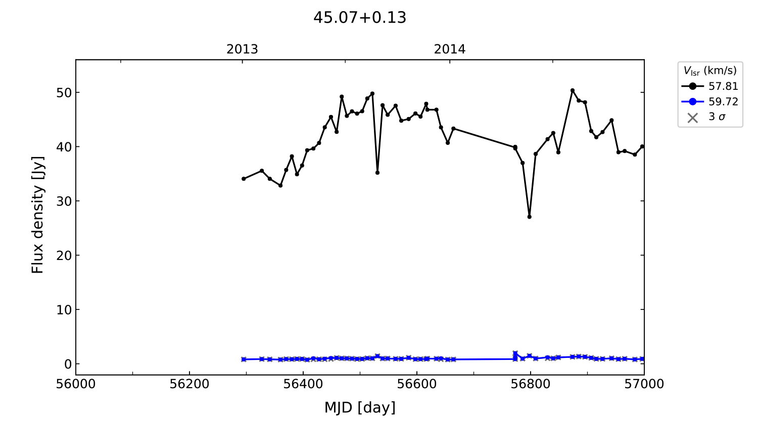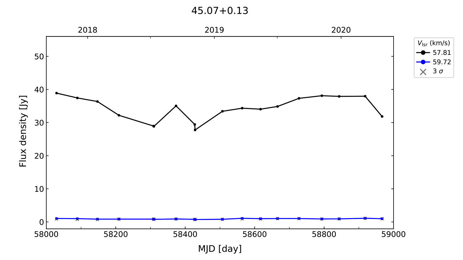(L,B) = (045.071, 000.132) (RA, DEC [J2000]) = (19 13 22.13, +10 50 53.110)