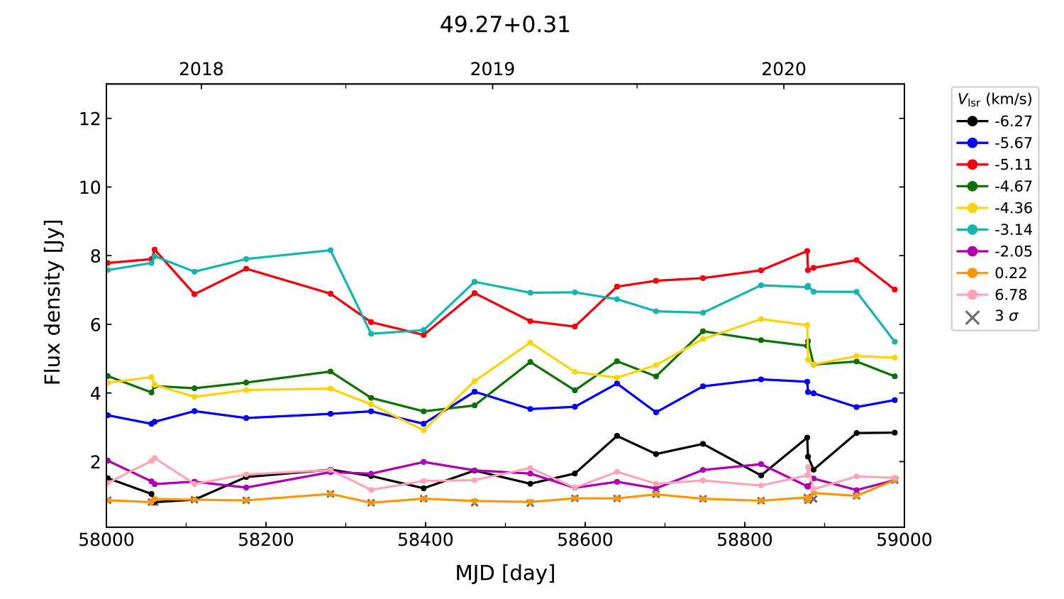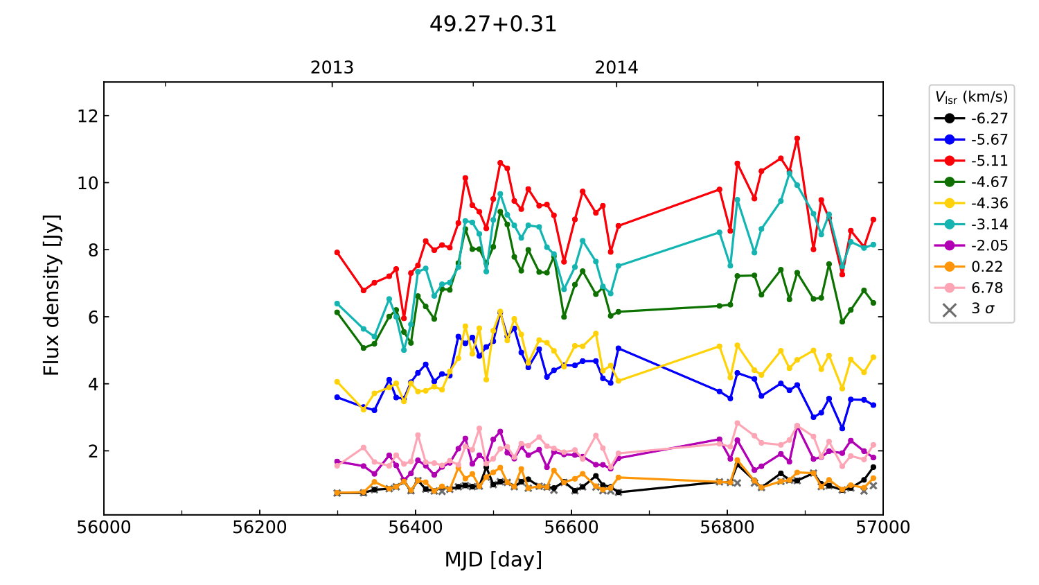(L,B) = (049.265, 000.311) (RA, DEC [J2000]) = (19 20 44.86, +14 38 26.910)