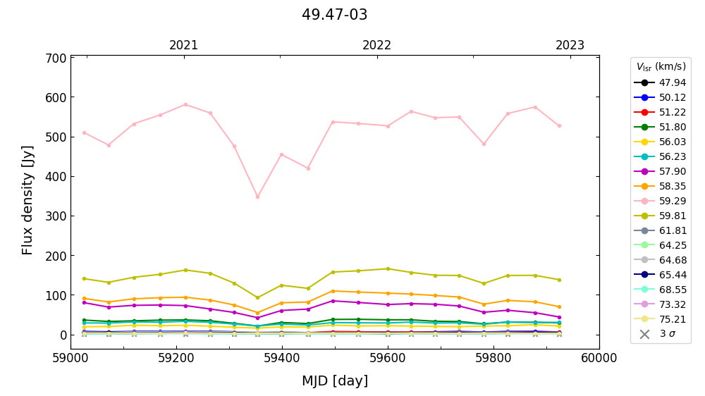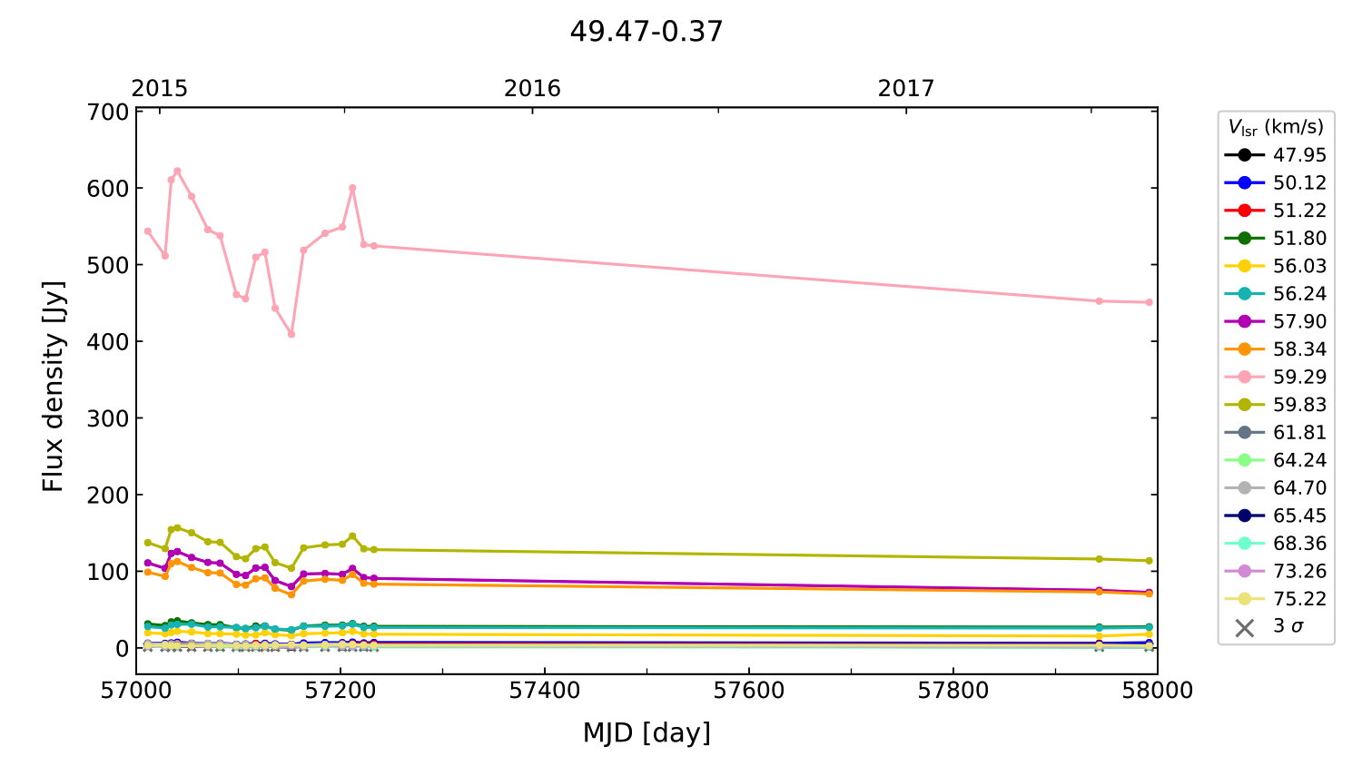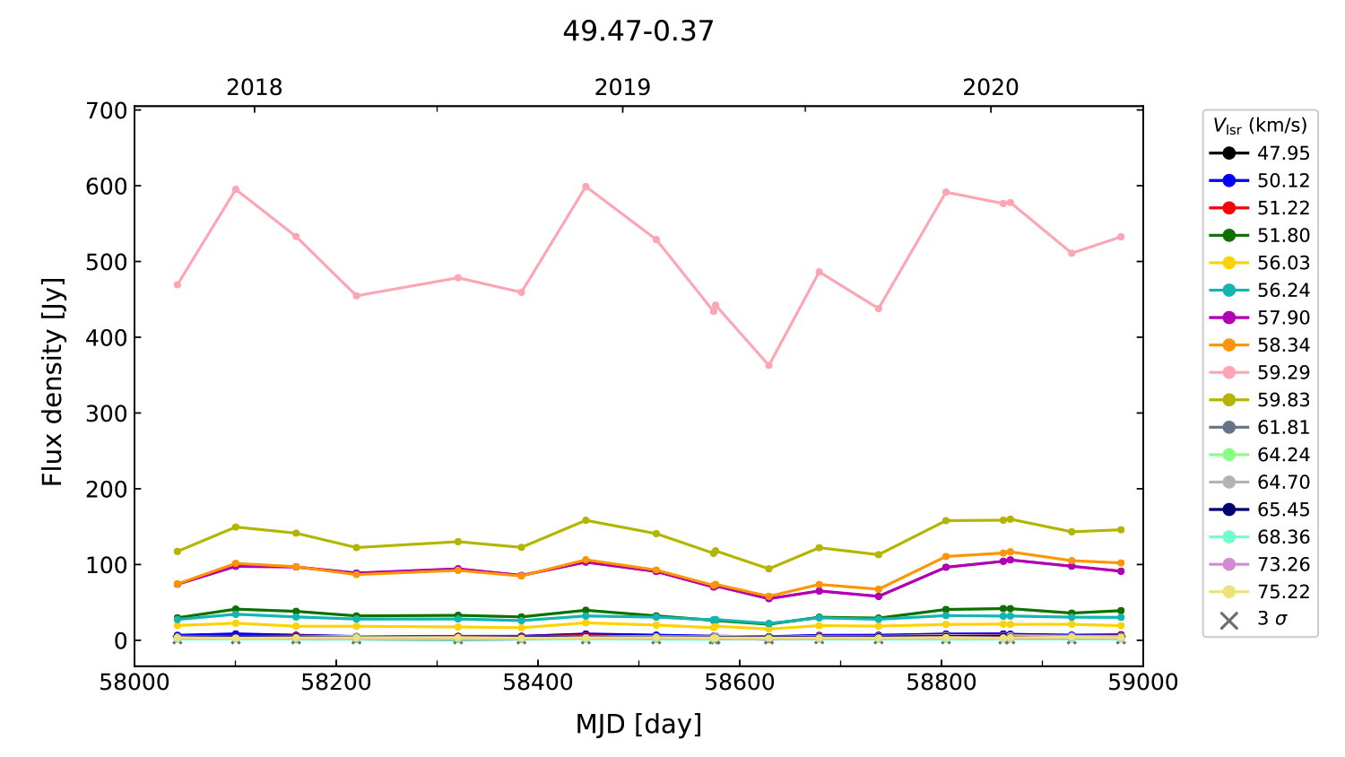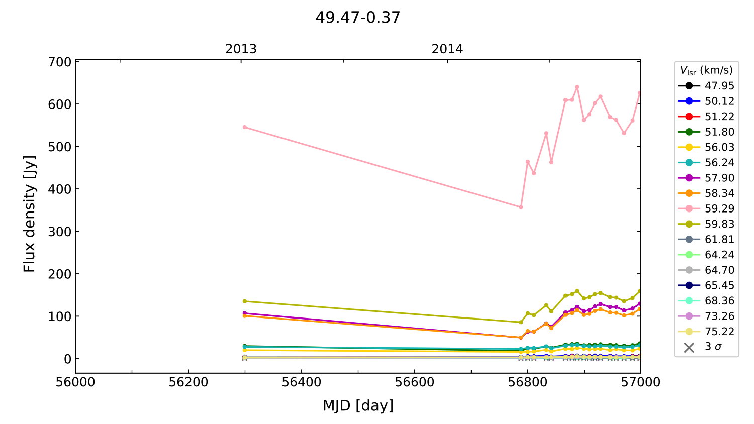 (L,B) = (049.470, -00.371) (RA, DEC [J2000]) = (19 23 37.90, +14 29 59.260)