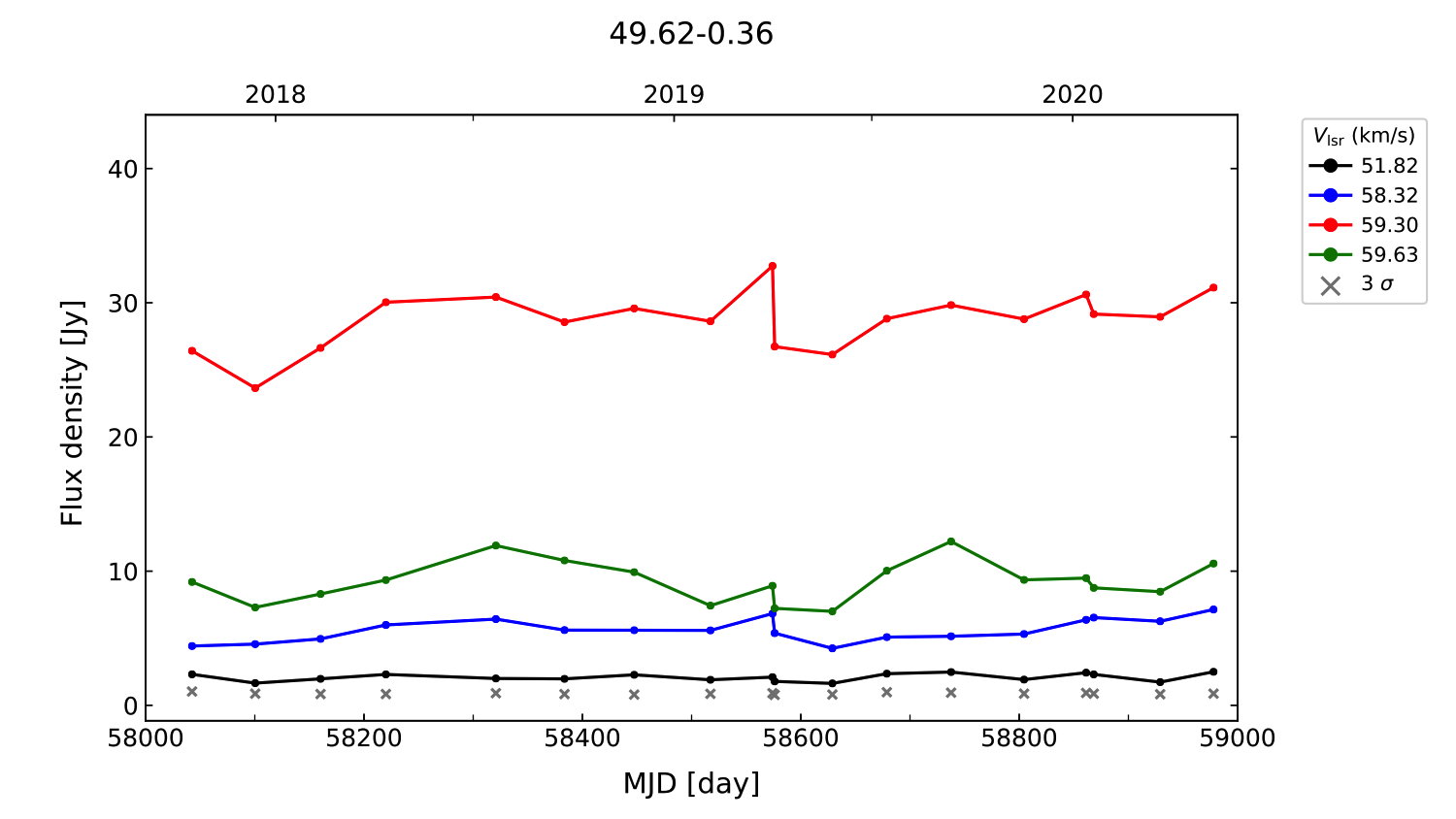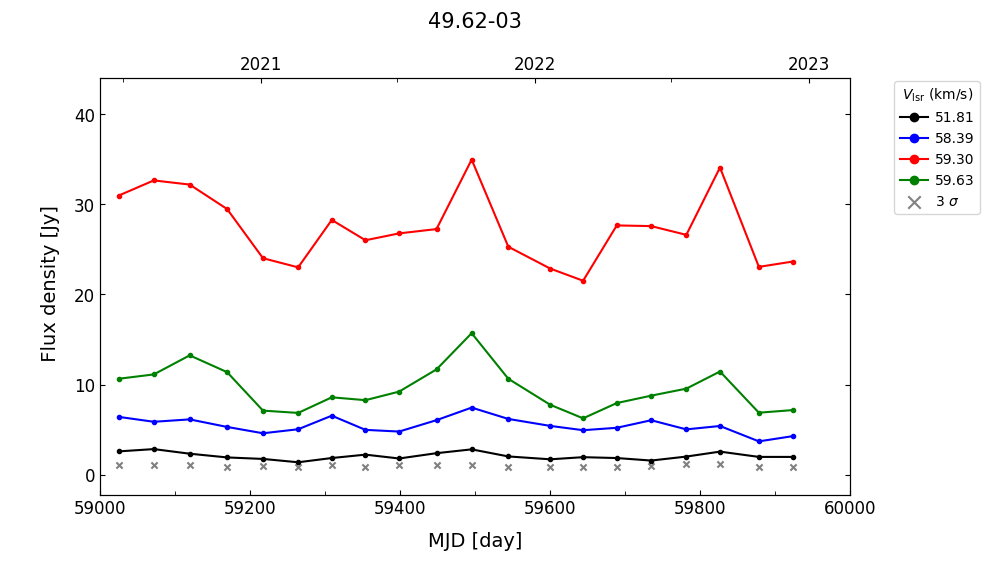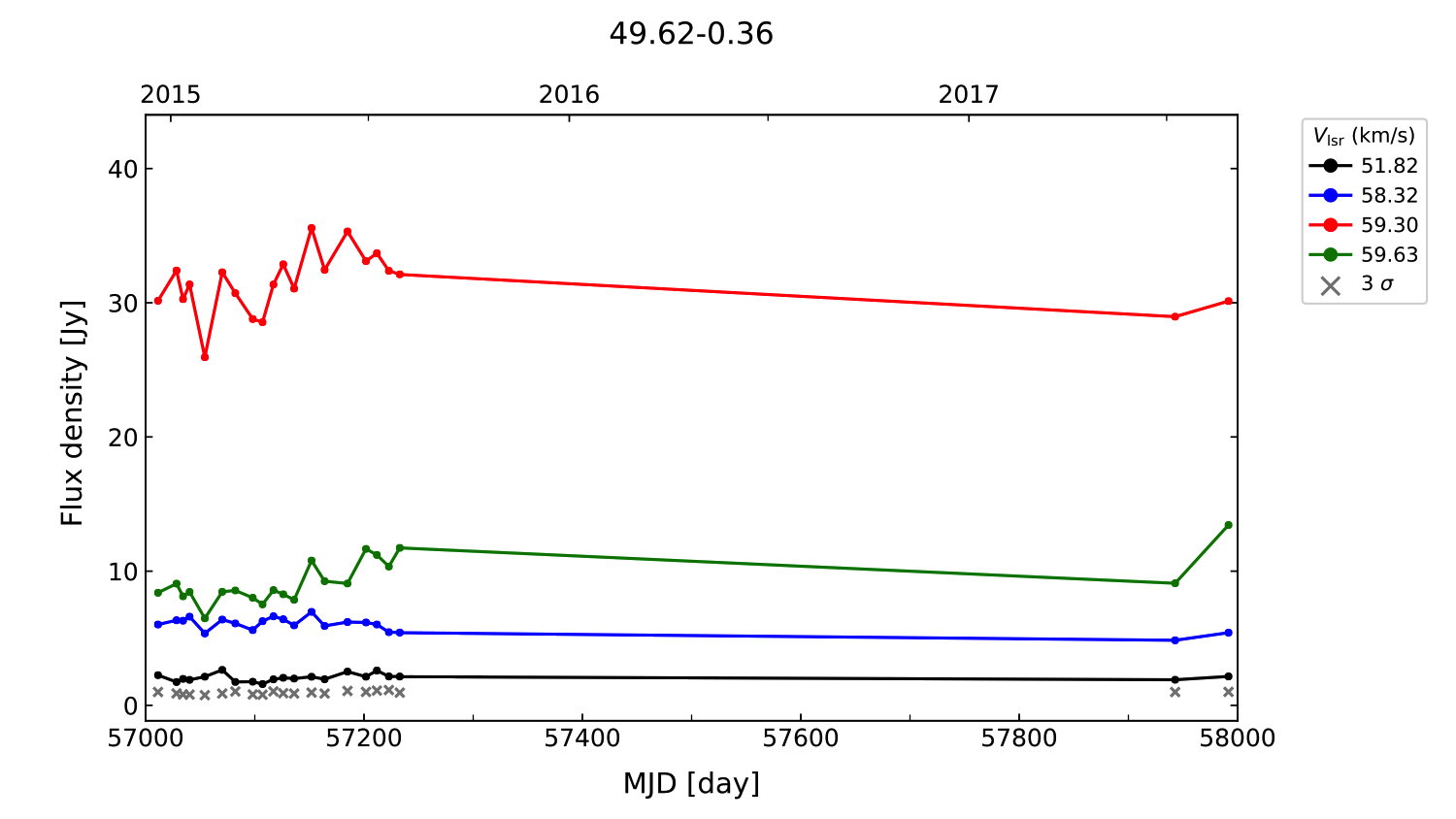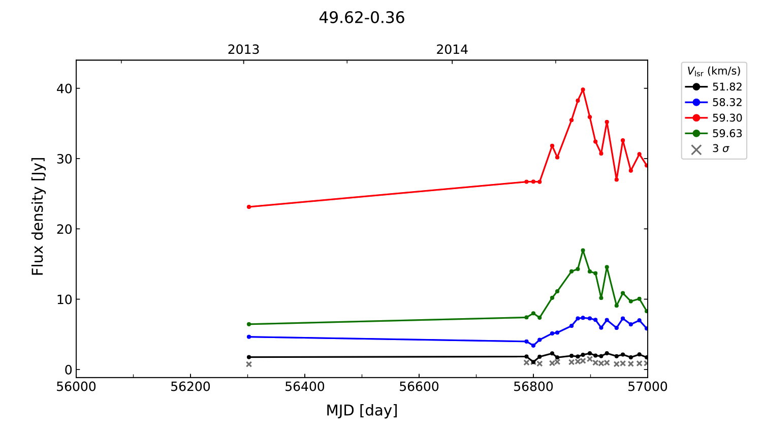 (L,B) = (049.617, -00.360) (RA, DEC [J2000]) = (19 23 52.80, +14 38 03.250)