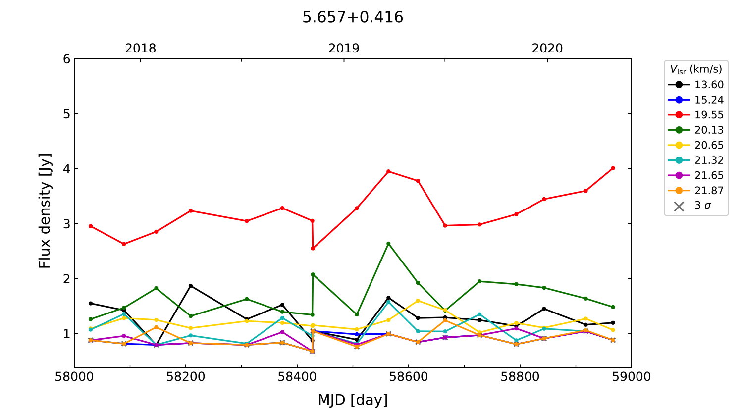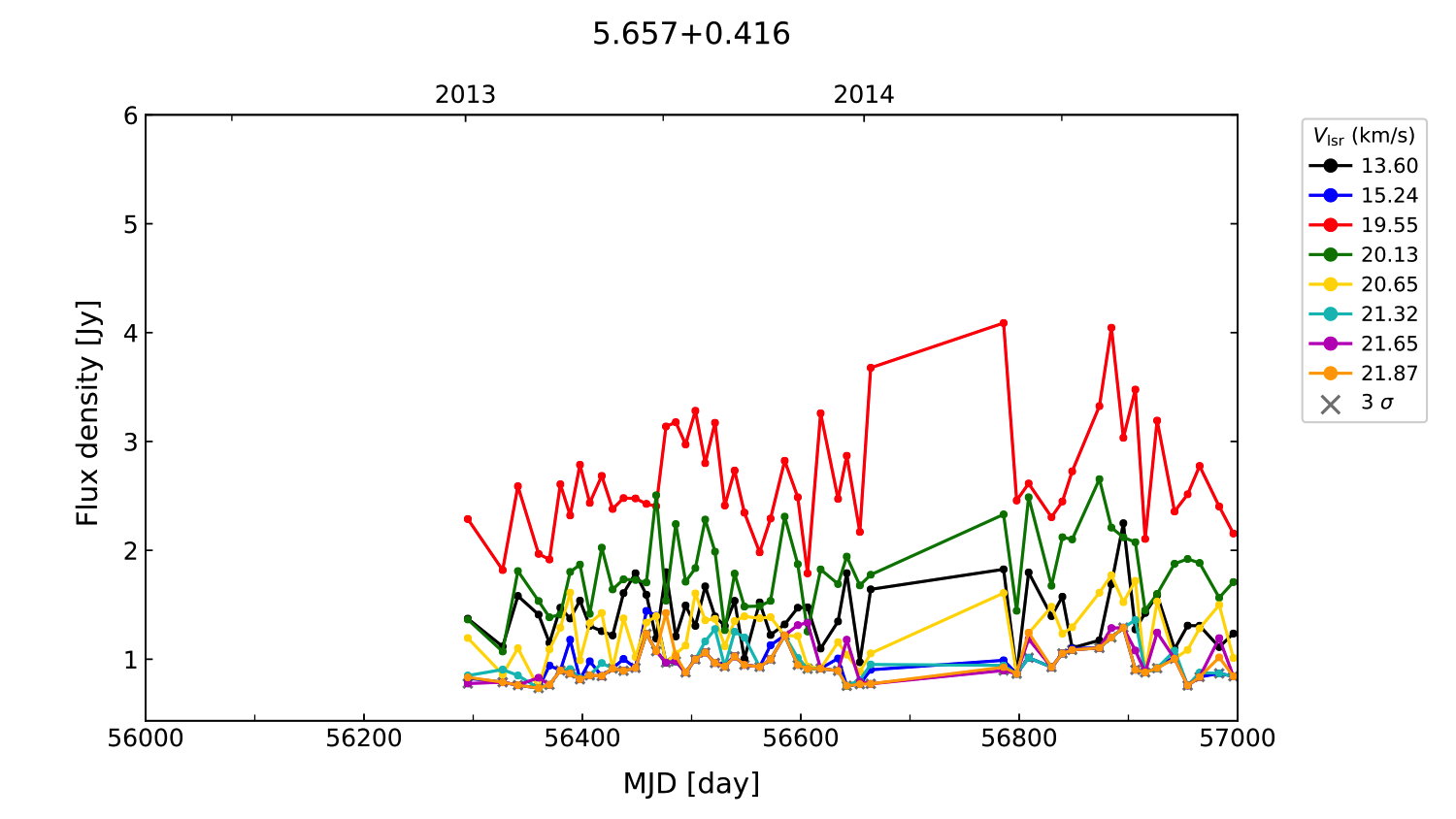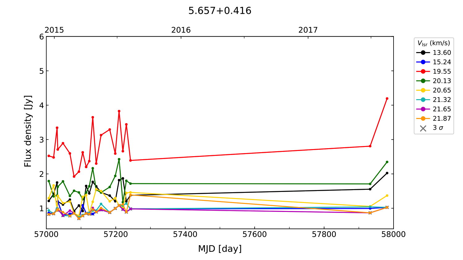 (L,B) = (005.657, 000.416) (RA, DEC [J2000]) = (17 56 56.53, -23 51 42.000)