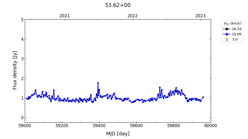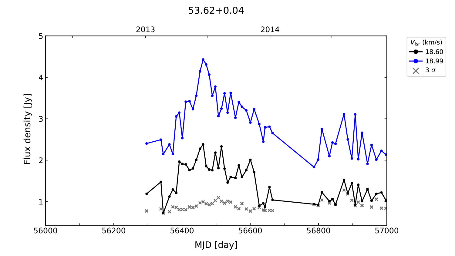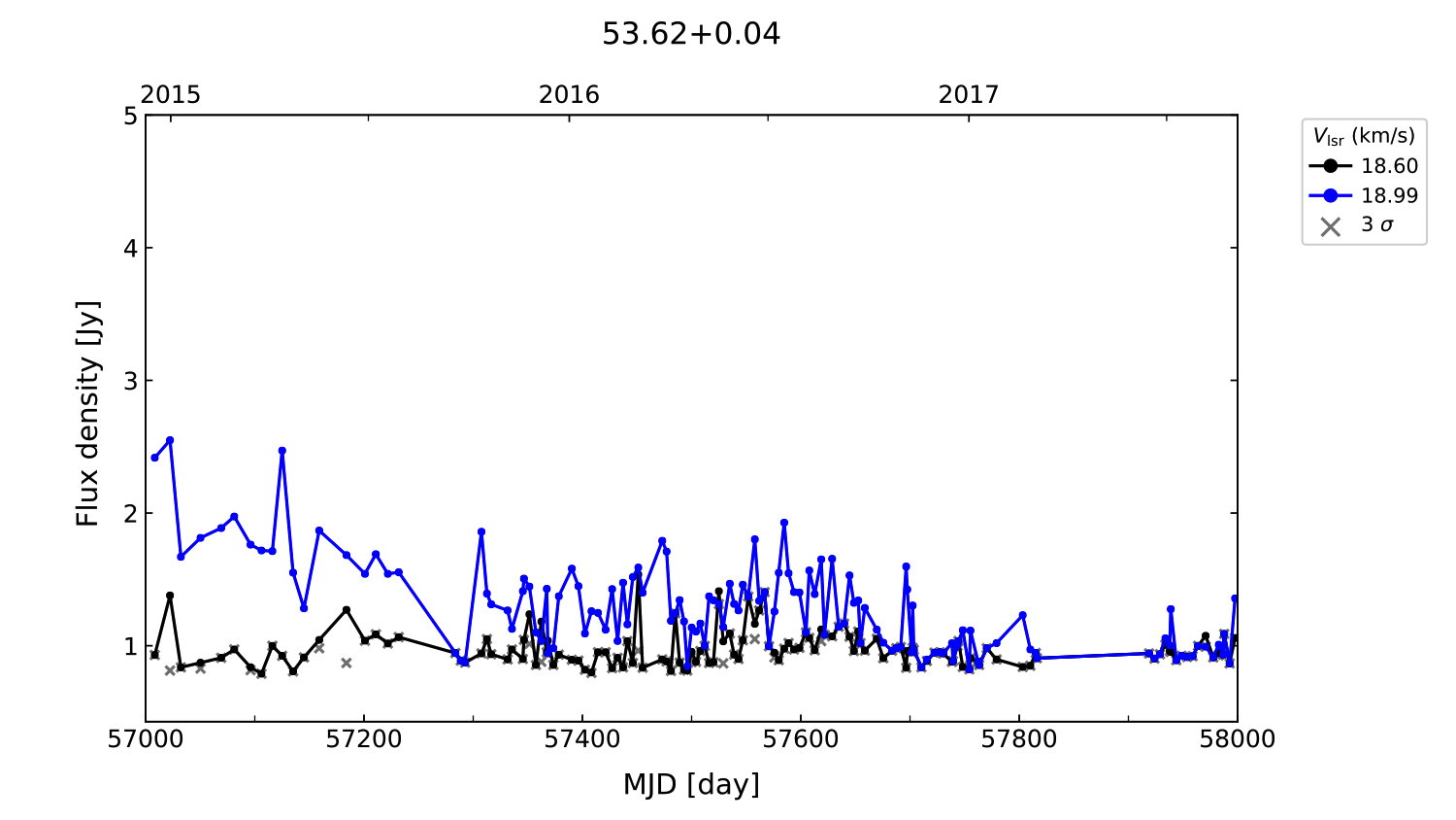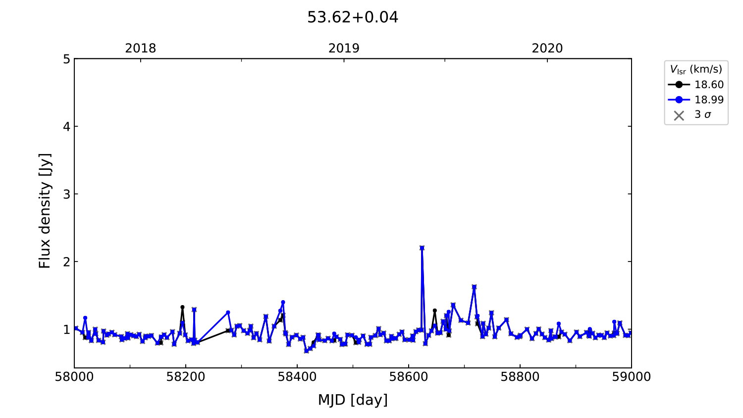 (L,B) = (053.618, 000.035) (RA, DEC [J2000]) = (19 30 23.02, +18 20 26.680)