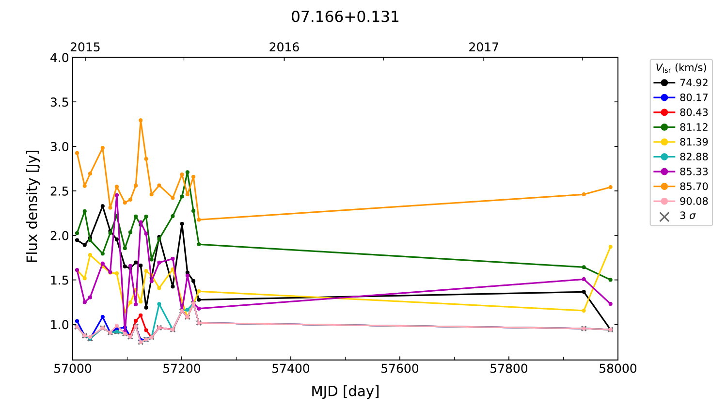 (L,B) = (007.166, 000.131) (RA, DEC [J2000]) = (18 01 17.48, -22 41 44.000)