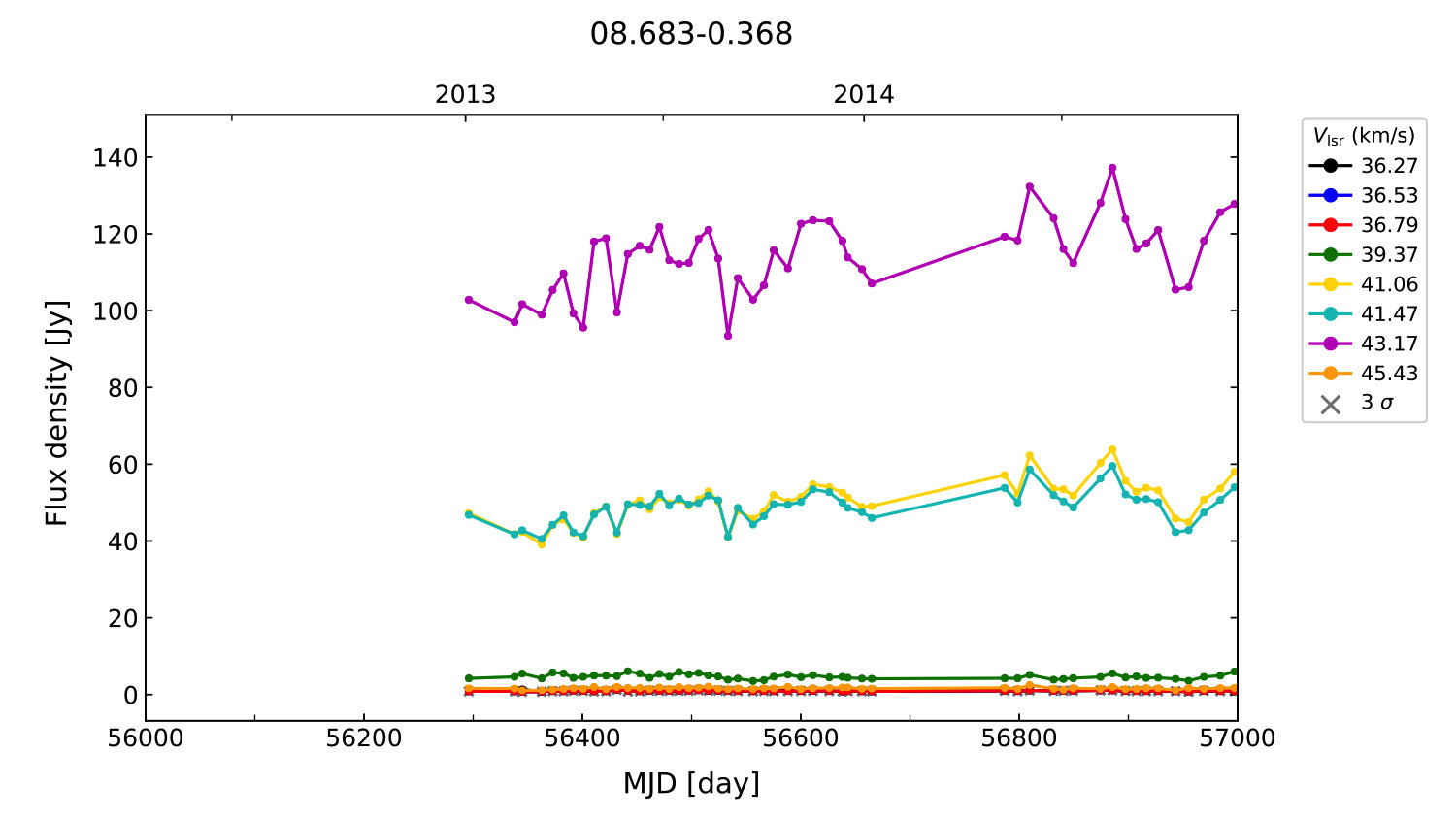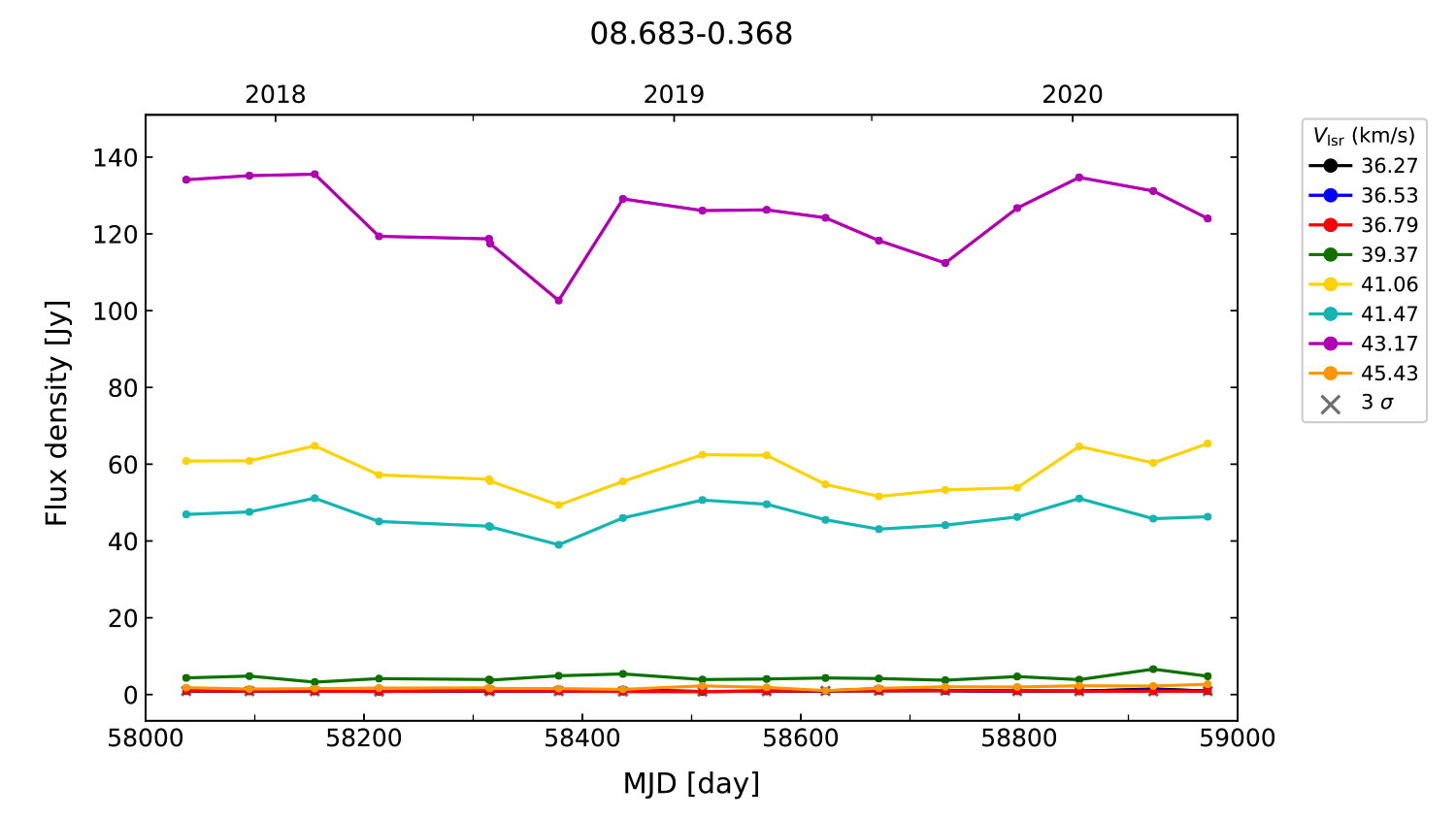 (L,B) = (008.683, -00.368) (RA, DEC [J2000]) = (18 06 23.49, -21 37 10.200)