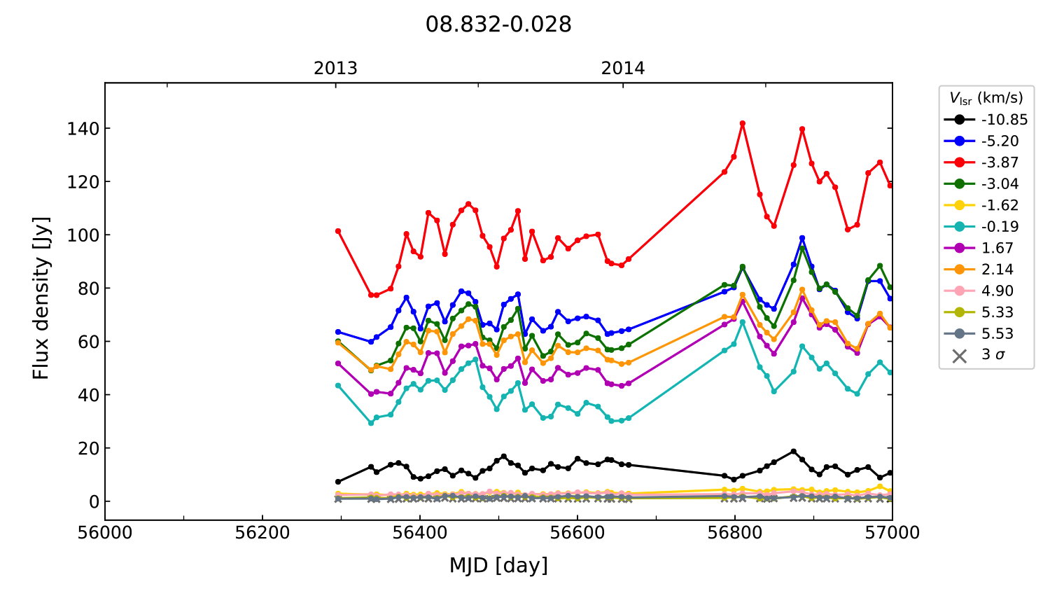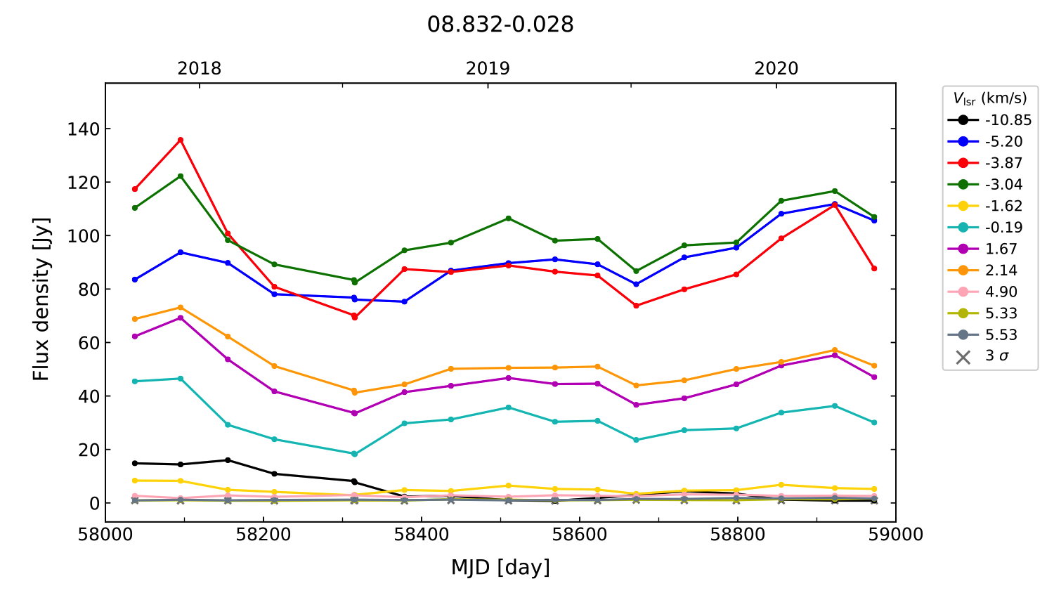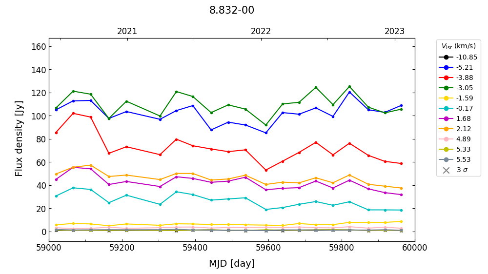 (L,B) = (008.832, -00.028) (RA, DEC [J2000]) = (18 05 25.67, -21 19 25.100)